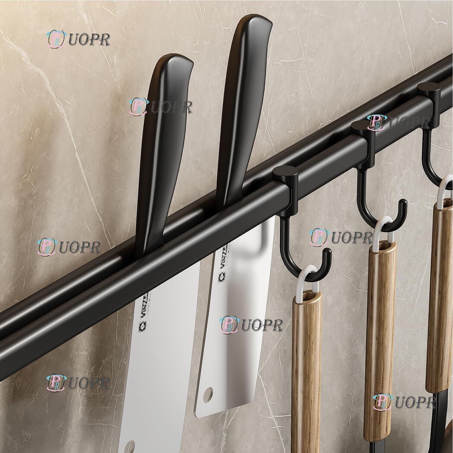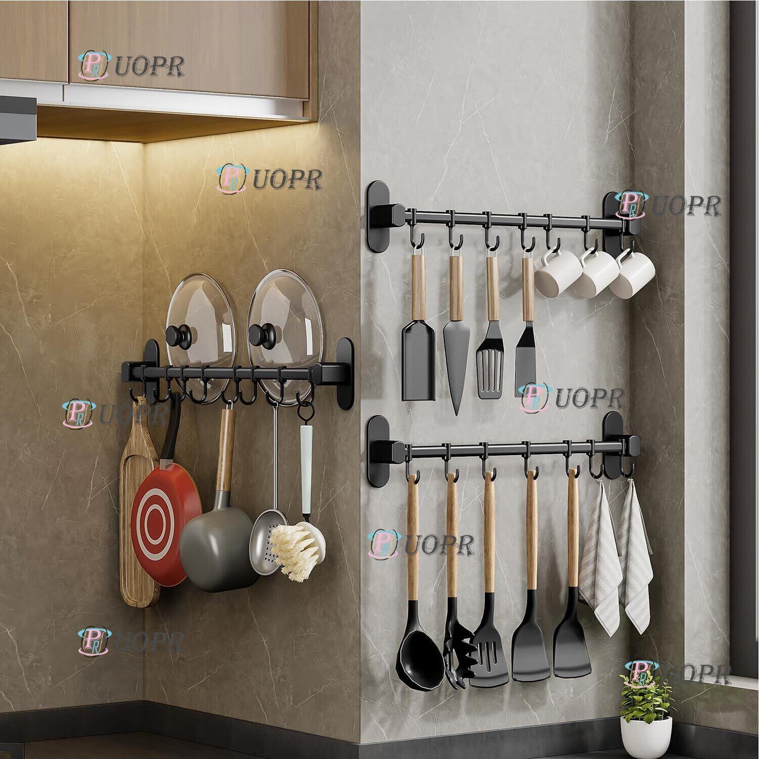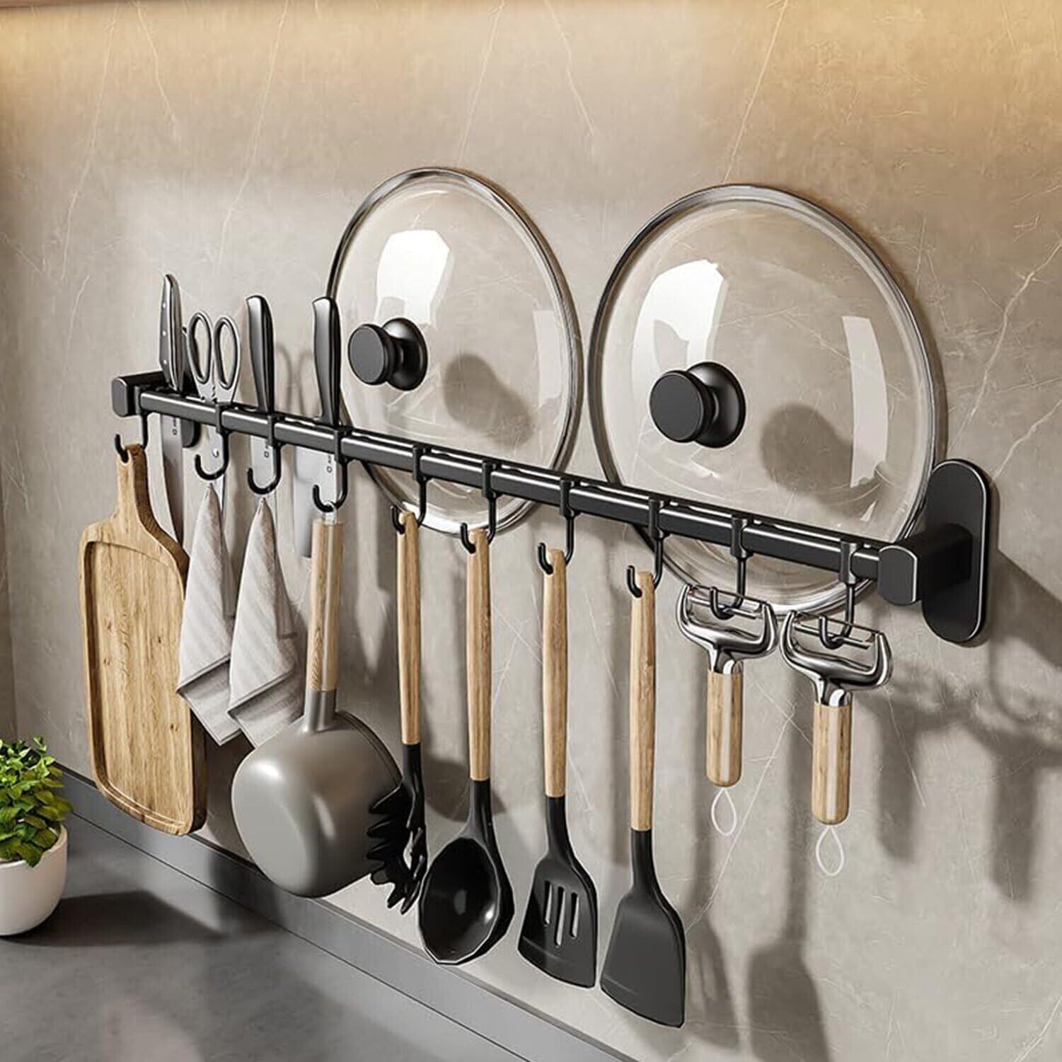 【数量限定】キッチンツールフックステンレス 粘着 、バスルームラック フック扉裏 、キッチンツールフック 吊り下げ、壁掛け式 強力粘着固定 防水 穴あけ不要 、フック付き ステンレス 調理器具 収納 ラ、ック お風呂 シャワーラック タオルハンガー 台所ラック、キッチンツ (ブラック, 60CM) | SmartLiving+
