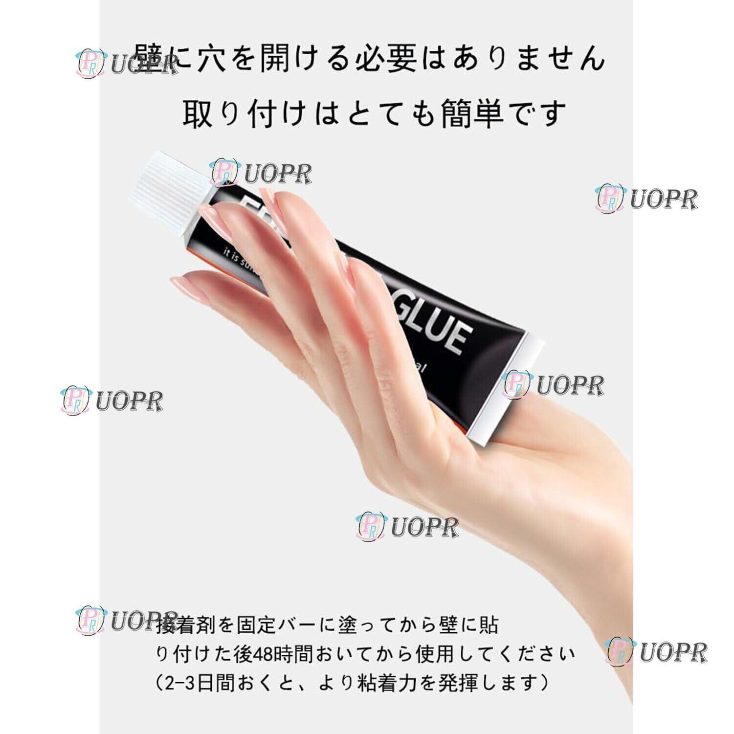 【注意事項】接着剤を固定ストリップに塗布した後、壁に48時間貼ってから使用する(2〜3日放置すると、接着力がより発揮される)。適用壁のタイプ:滑らかなガラス、大理石、木材、金属、陶製タイルなどの壁面に設置することができる。注:粉壁、壁紙、不均一面、塗装壁には適用されません。