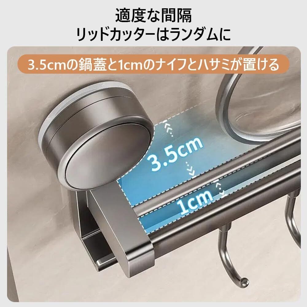 【カスタマイズ可能な収納】移動式のフックにより、タオルや調理器具を効率的に整理できます。本吸盤 フックはダブルバー設計を採用。収納容量が大幅に向上し、小物(ナイフ)から大物(鍋蓋)まで幅広く収納可能です。