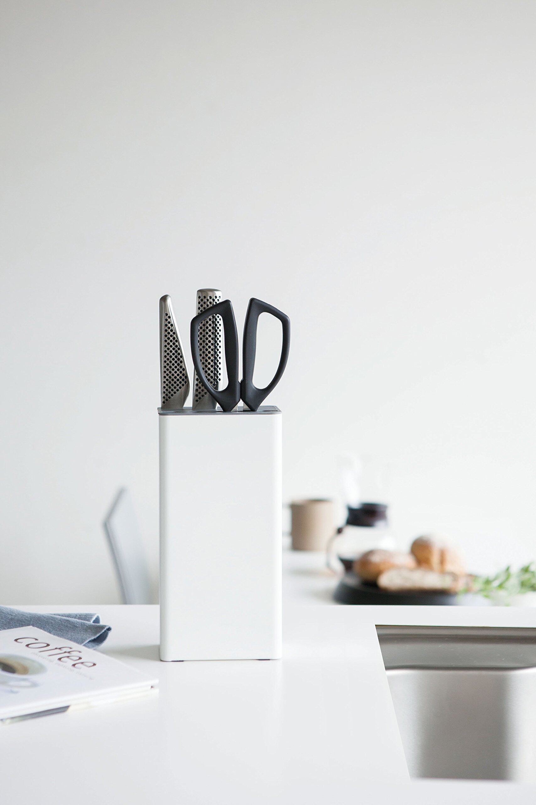 包丁とキッチンバサミを一括収納! 本体に重量があるので倒れにくい設計。シンプルでスタイリッシュなデザインです。