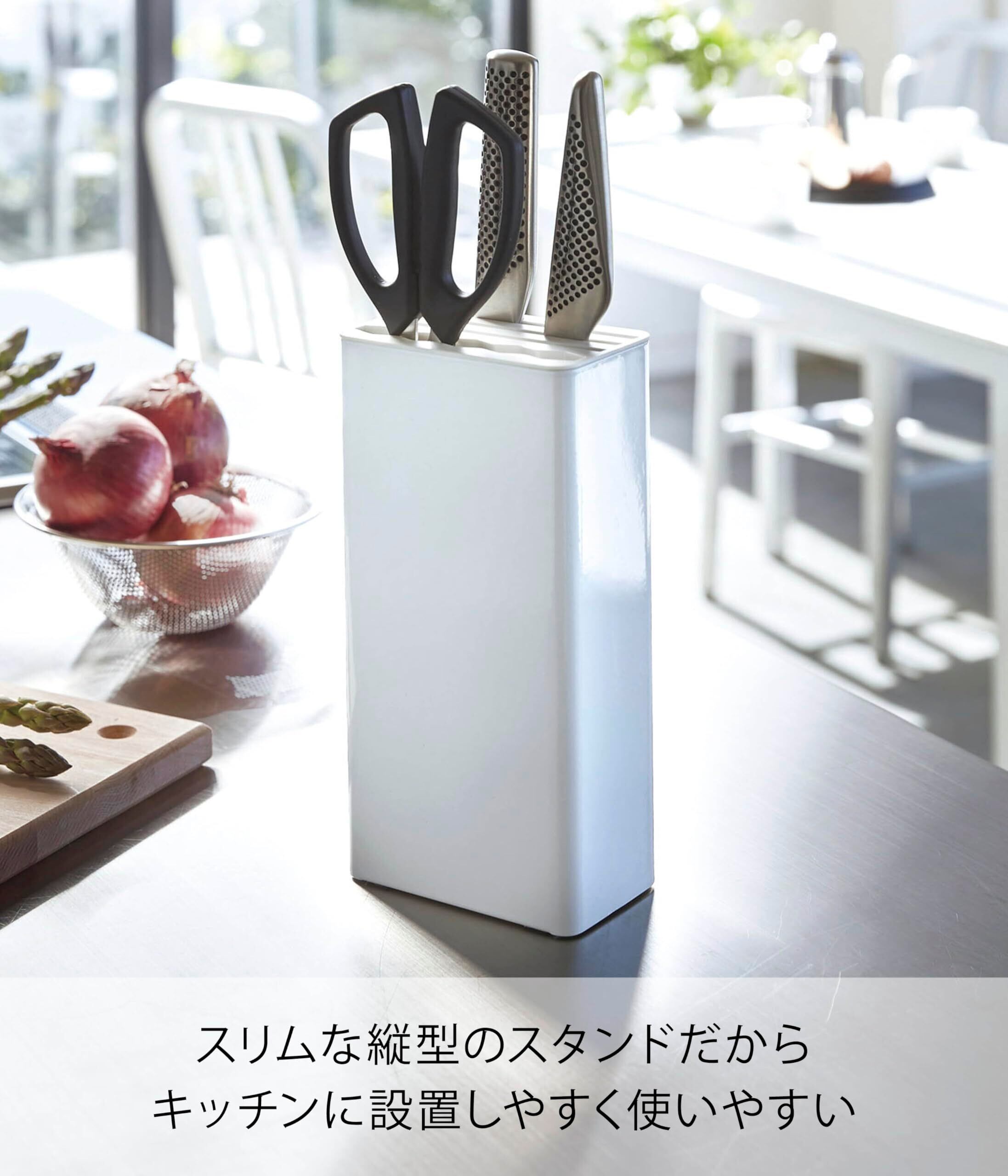 包丁とキッチンバサミを一括収納! 本体に重量があるので倒れにくい設計。シンプルでスタイリッシュなデザインです。