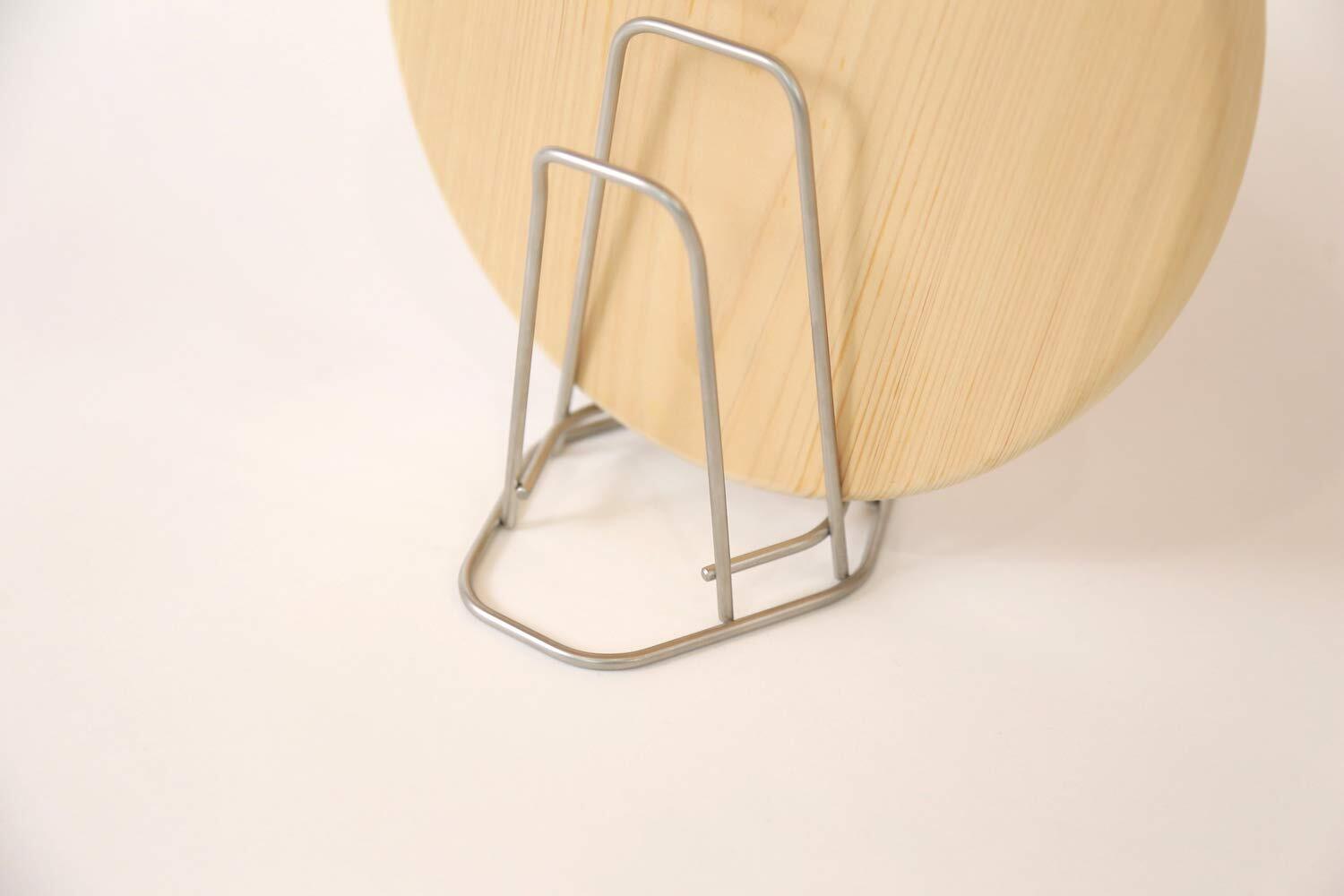 woodpeckerオリジナルの「まな板スタンド」が完成しました。 大サイズから手のひらサイズのミニまな板までどんなサイズも安定して置きやすい「まな板スタンド」です。 ステンレスの丸棒を使うことによってまな板と触れる部分をできる限り少なくして乾燥しやすさを追求しました。底面が1.5センチ浮くようにデザインされているため、まな板が乾きやすくなっています。 また、丸型のまな板などを置いても底面が下につくことなく浮かせることができるので衛生的です。 特徴 ・底面を1.5センチ浮かせてあるためまな板が乾きやすい ・ステンレスの丸棒でできているため触れる部分が少なく衛生的 ・安定感がありながら可能な限り省スペース ・大サイズからミニサイズまであらゆるまな板やカッティングボードに対応 ・3センチまでの厚みに対応 デザインは「ヨシタ手工業デザイン室」さんにお願いしました。 以前からで「ヨシタ手工業デザイン室」さんのオリジナルまな板「てがかり」の製作を担当させていただいていますが、吉田さんのもの作りに対する真摯な姿勢は本当に素敵でいつも刺激をいただいています。 woodpeckerのまな板やカッティングボードはもちろんのこと「ヨシタ手工業デザイン室」さんデザインのまな板「てがかり」シリーズにも対応しています。
