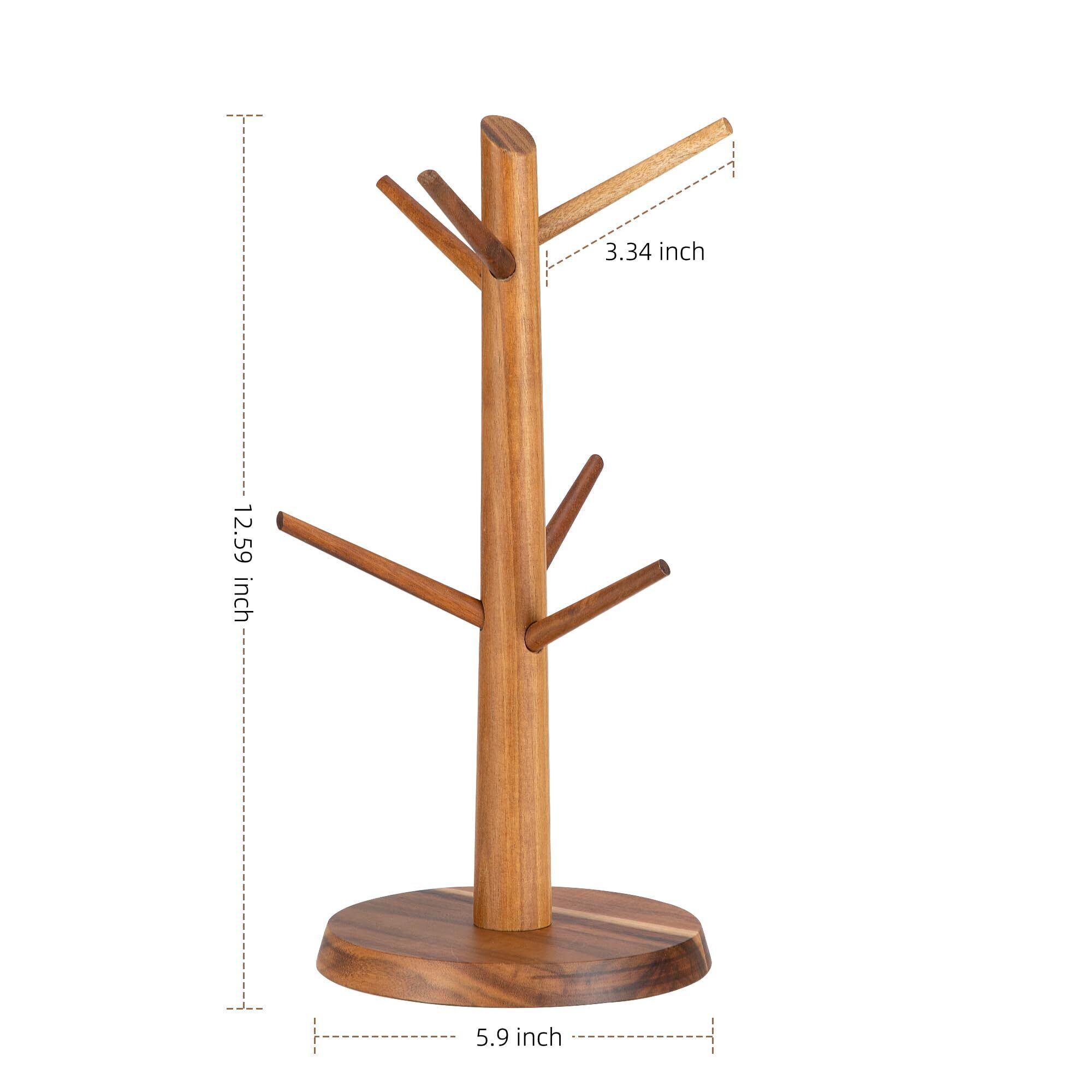 E-ROOM TREND マグカップツリー カップスタンド コップスタンドフッ フック6個付き グラススタンド キッチン 収納 (アカシア)