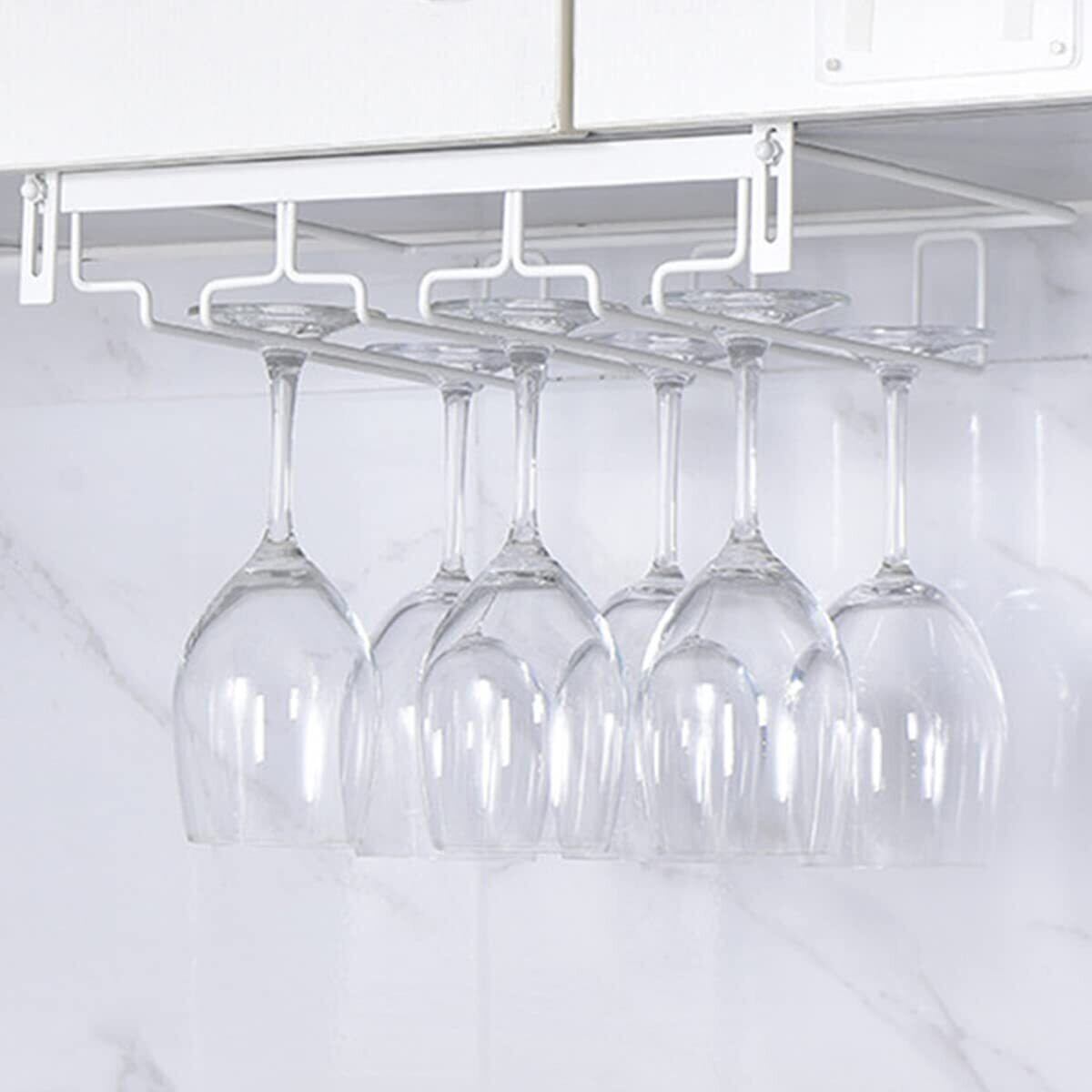 ワイングラスホルダー ワイングラスハンガー 吊り下げ 3列 グラスホルダー 棚厚さ調節可能 穴あけ不要 簡単に取り付けでき ワイングラス収納 (ホワイト)