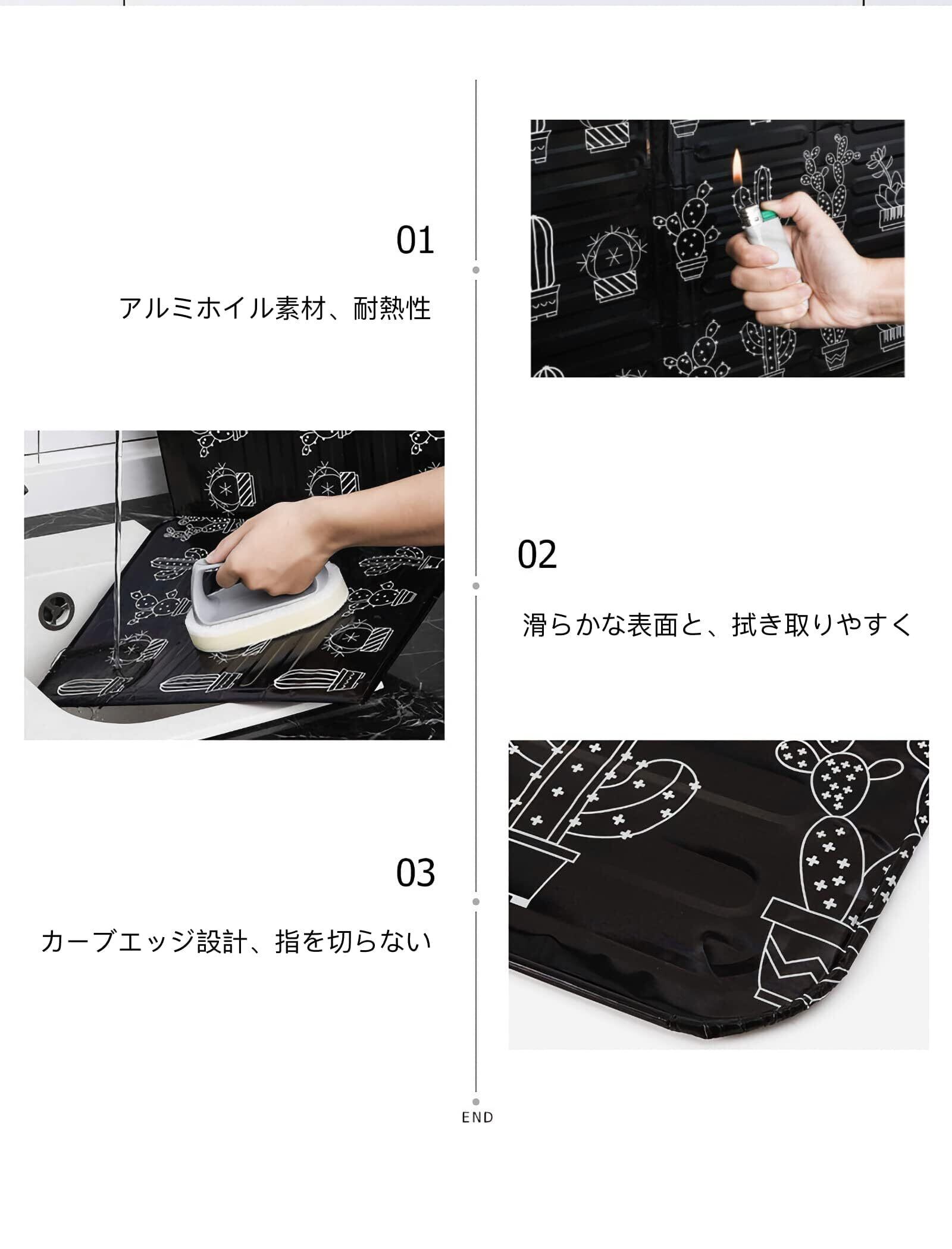 allbeschoi 油はねガード レンジガード 油はねガード 折り畳み式 お手入れ簡単 ストーブガード 油はねガード 油汚れ 水洗い 耐熱 アルミニウム 熱シールド レンジガード クックトップ撥油プレート 2個 (黒いサボテン)