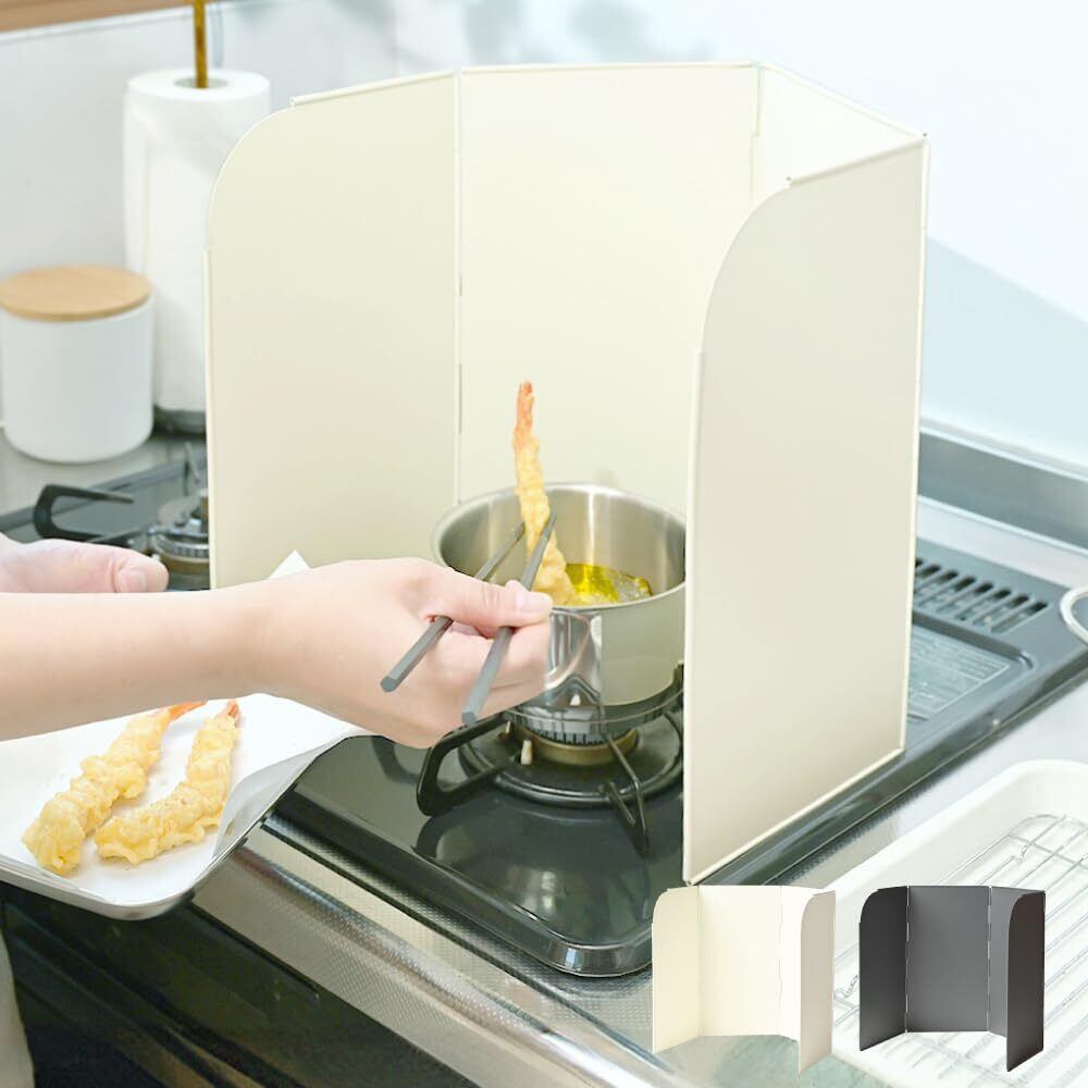 ■【折りたたみ式の便利デザイン!】このレンジガードは、使わないときは折りたたむことができ、コンパクトに収納可能です。必要なときだけ展開することで、省スペースにも対応し、キッチンをすっきりと保てます。