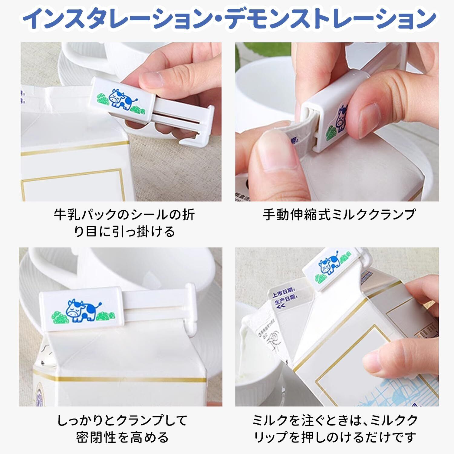【在庫処分】牛乳パックシールクリップ ミルクシールクリップ 密封クリップ 4個 可愛い 漏れ防止 伸縮可能 高い密封性 鮮度保持 汚染防止 牛乳パック、食品保存袋、コーヒー豆袋用 ミルクカートンシーラー ビニール袋クリップ 180度調整シーリングクリップ 密封クリップ | SmartLiving+
