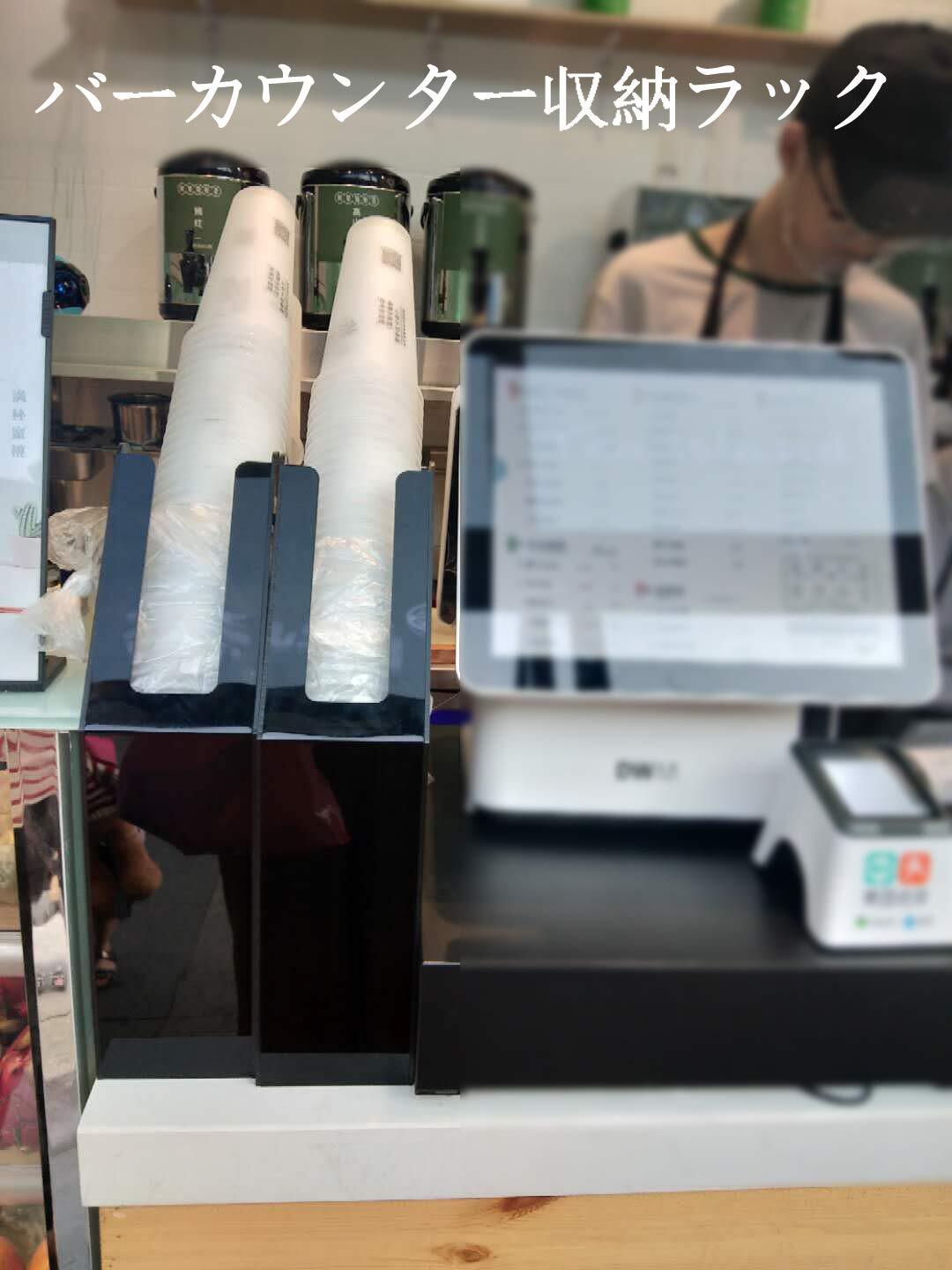 喫茶店、コンビニ、ビュッフェ、オフィスなど適用 バーカウンター収納ラック デザイン性と使い勝手が両立できるコップホルダー