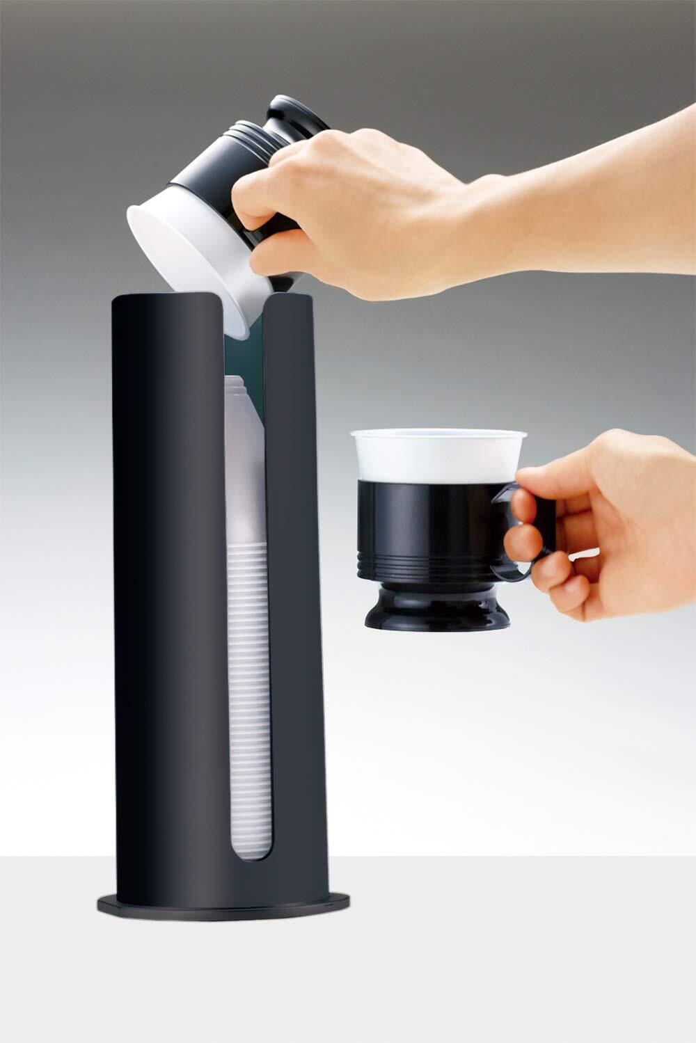 ■【シンプルで洗練されたデザイン!】この日本デキシーのインサートカップディスペンサーは、ブラックカラーがスタイリッシュで、どんな空間にも馴染みます。自宅やオフィスでの使用に最適で、飲み物の収納をスマートにサポートします!