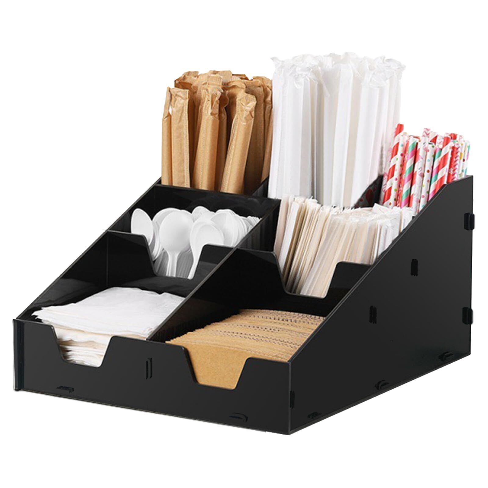 様々な収納ニーズに対応:この紙コップホルダーは6部屋あり、サイズは長さ16.8 cm幅33.7 cm高い28 cmで種類ごとに分けて収納できます。コーヒーカップや砂糖、マドラーなどのコーヒー用品やティーバッグを収納します