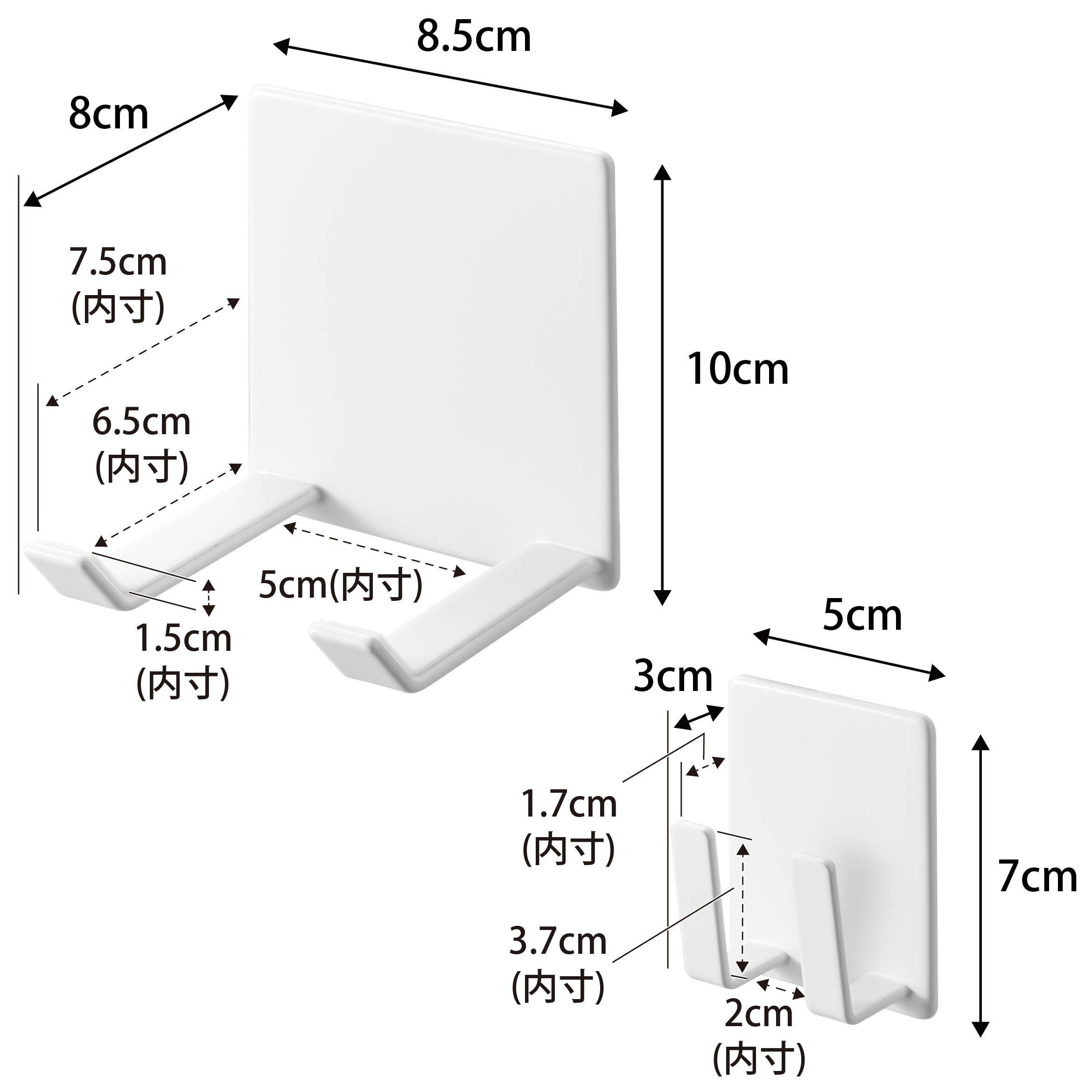 商品サイズ ドライヤーハンガー:W8.5×D8×H10cm コードホルダー:W5×D3×H7cm  ▪商品重量:約250g  ▪内寸 ドライヤーハンガー部:W8×D7.5×H1.5cm ドライヤーハンガー部の間隔:5cm ドライヤーハンガーの幅:1.5cm(1つあたり) コードホルダー部:W4×D1.7×H3.7cm コードホルダーの間隔:2cm コードホルダーの幅:1cm(1つあたり)