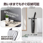 ■【250度までの耐熱性能を実現!】このホルダーは、耐熱温度250度まで対応しているため、使用後の熱いヘアアイロンをそのまま収納することができます。熱による事故の心配をせずに、安心して毎日のスタイリングを楽しむことができます。