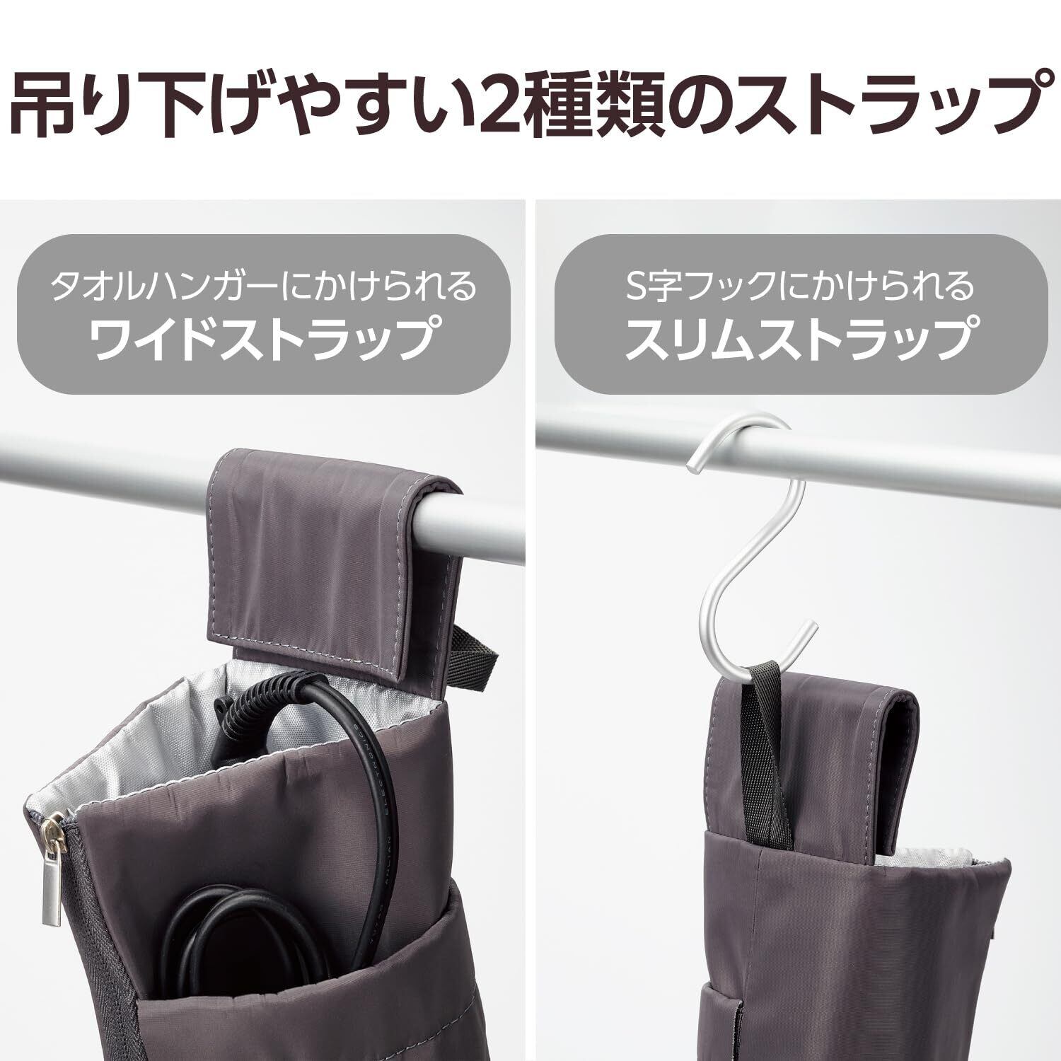 【特価セール】エレコム ヘアアイロンホルダー 耐熱 250度 そのまましまえる 吊り下げ 一時置き 2way 側面ファスナー コードポケット 2タイプストラップ 旅行 断熱素材 グレー BA-HIHLFGR | SmartLiving+