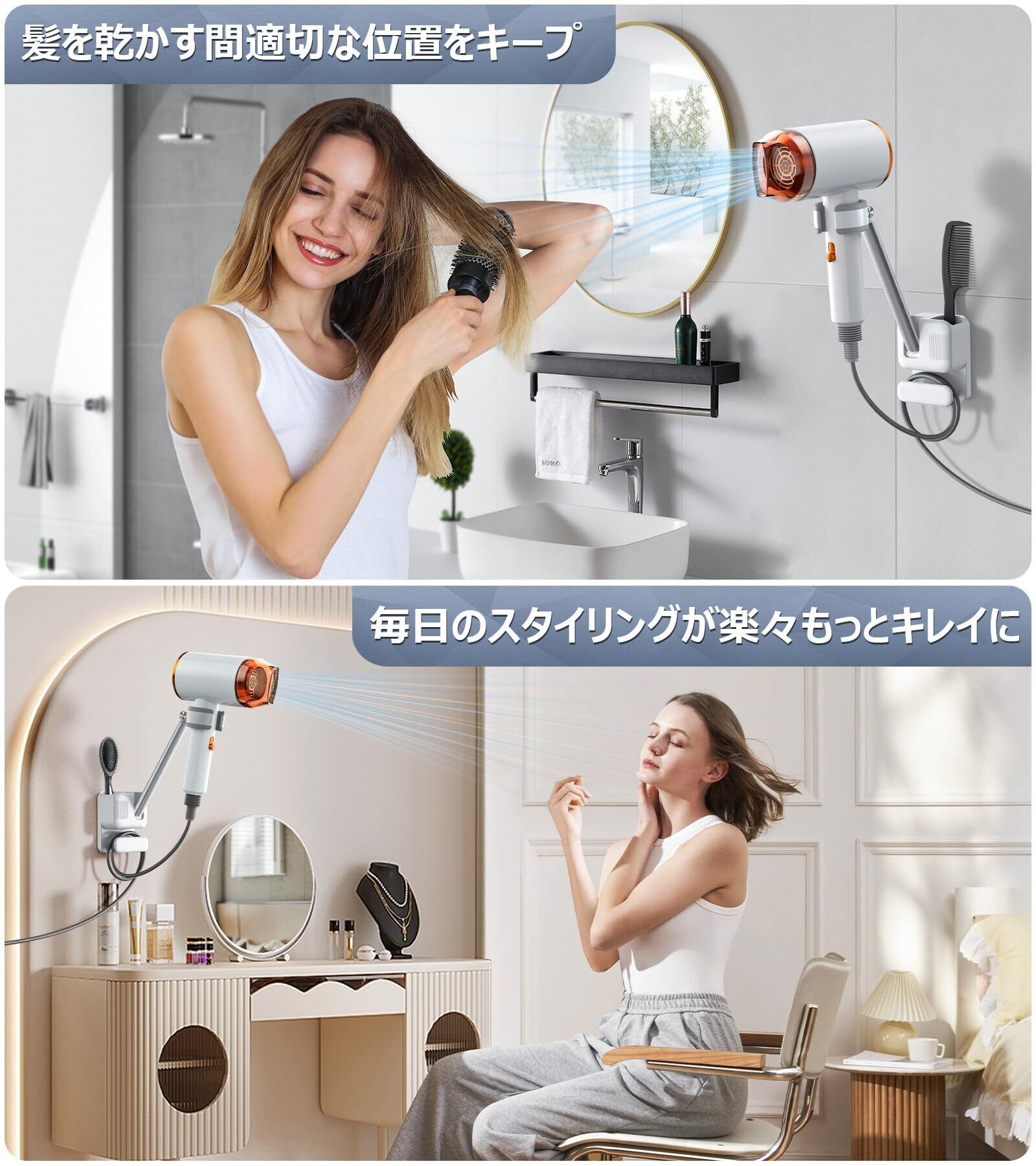 「このドライヤーホルダーで、毎日のヘアスタイリングをより快適に、そしてスムーズに楽しんでください!」