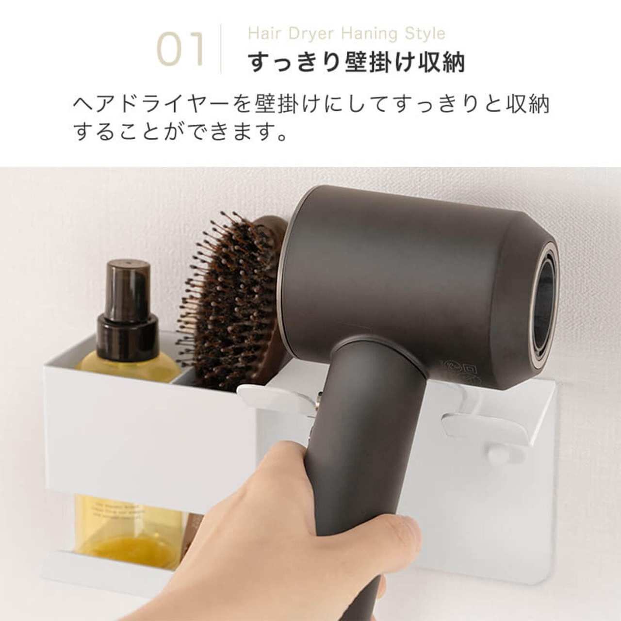 ■【収納力抜群&使いやすさ!】ドライヤーだけでなく、ブラシやスタイリング剤なども一緒に収納可能です。頻繁に使うアイテムを手の届くところにまとめておけるため、毎日のヘアケアがさらに快適に!