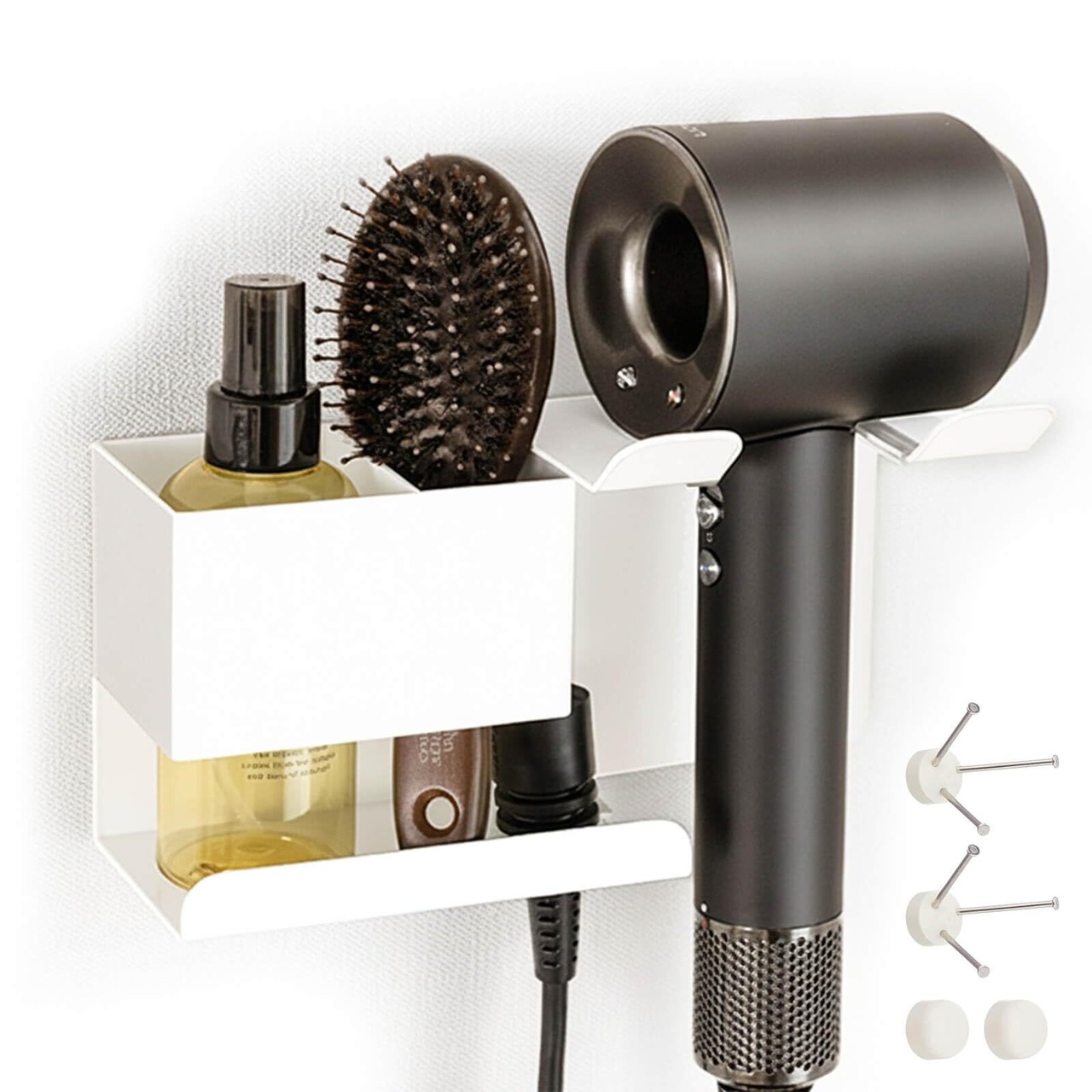 Recovery Me 【賃貸OK】 収納付き ドライヤーホルダー ドライヤー収納 壁掛け ネジ止め 賃貸 ドライヤー収納ケース ドライヤー収納ボックス ドライヤー収納 壁 フック かご (ホワイト)