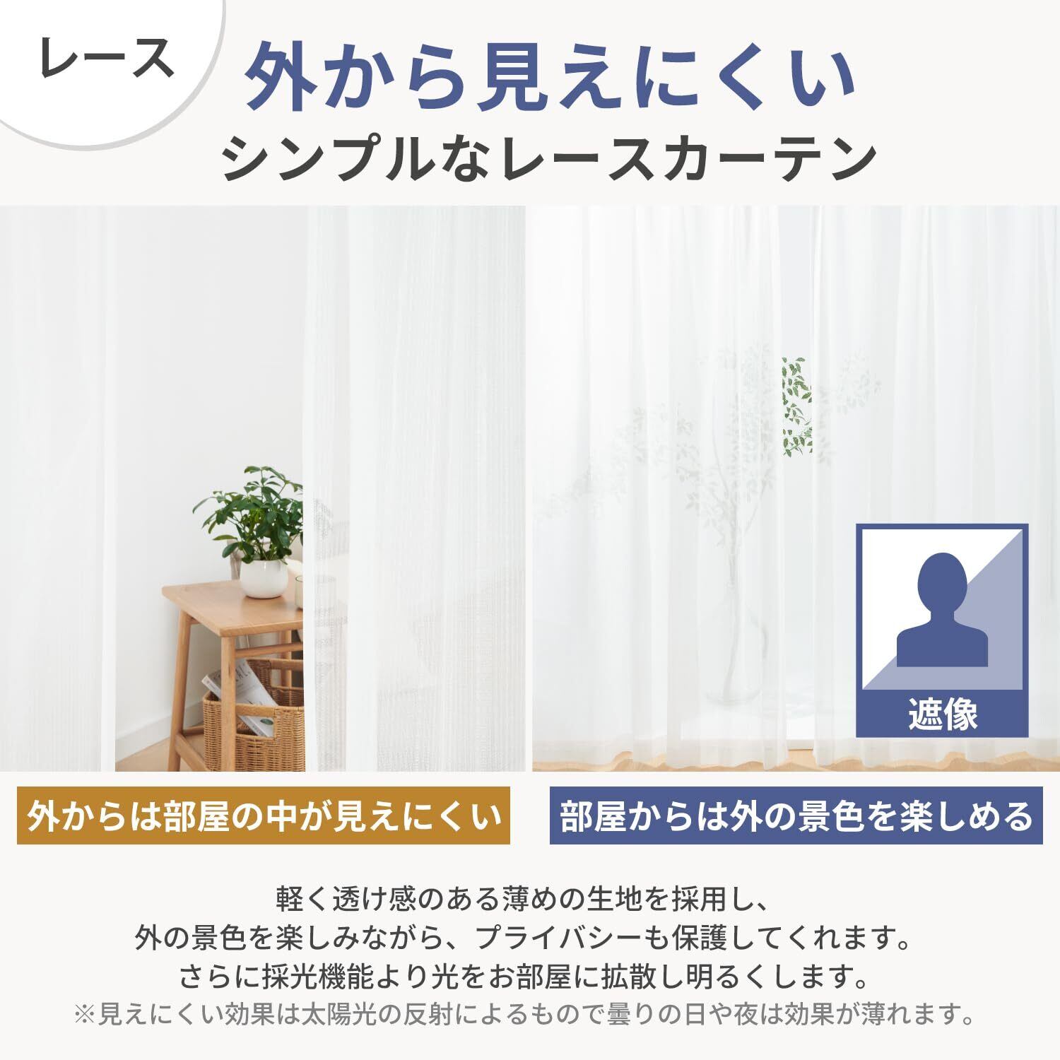 【商品仕様】※組成:ポリエステル100%。※機能:遮光1級/遮熱保温/形状記憶加工/遮像/UVカット/ウォッシャブル。※縫製:1.5倍ヒダ/ 2ッ山を採用し、出来上がり幅に対して使う生地の幅を1.5倍としっかり使うことで機能性がアップします。※形状記憶加工:厚地カーテンを波型に整え、ピシッと整った状態を長く保ちます。※セットで届く:厚地2枚とミラーレースカーテン2枚にアジャスターフックがついているので届いてすぐお使いいただけます。