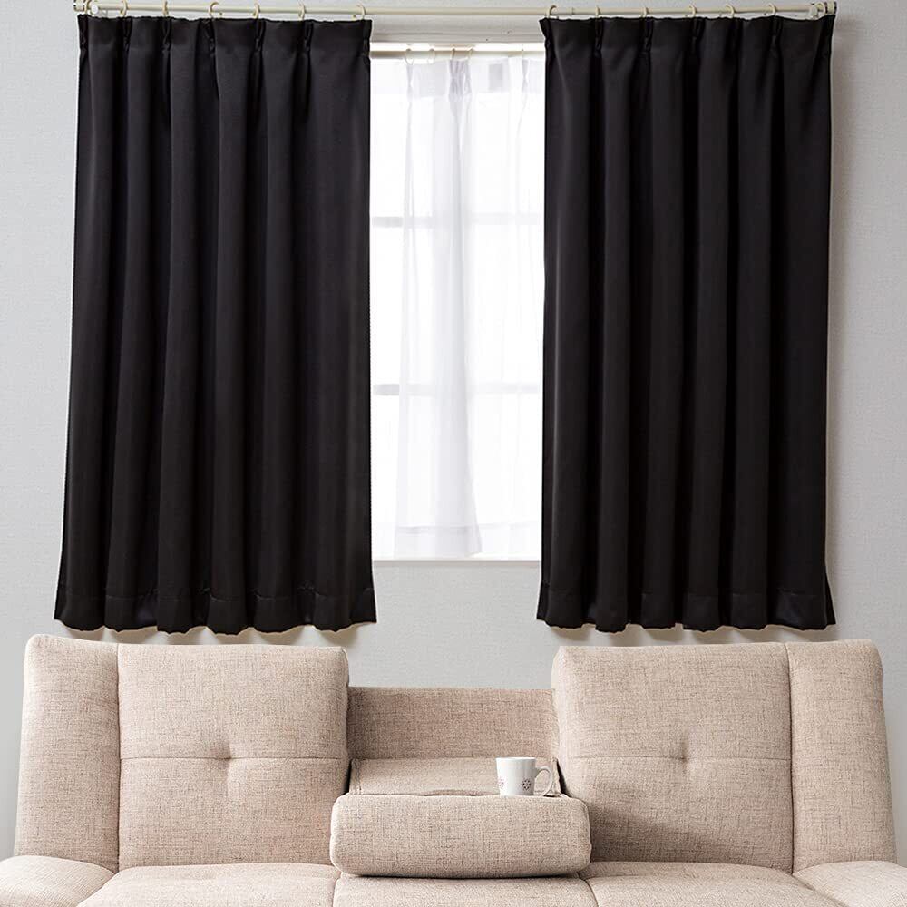 アイリスプラザ 遮光度99.99%カーテン 幅100×丈135cm 1級遮光 タッセル付き しっかり厚手 節電&省エネに 断熱/防寒 洗濯機OK 2枚組 ブラック