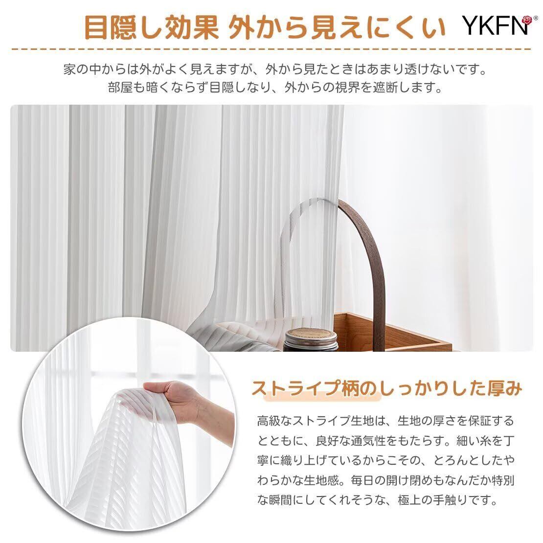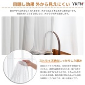 ■【おしゃれで機能的なレースカーテン!】YKFNのレースカーテンは、幅100cm、丈200cmの2枚組。透けないデザインで外からの視線をしっかりカットしながら、柔らかな光を取り入れた居心地の良い空間を演出します。無地やストライプデザインは、さまざまなインテリアにマッチし、北欧スタイルの統一感をプラスします!