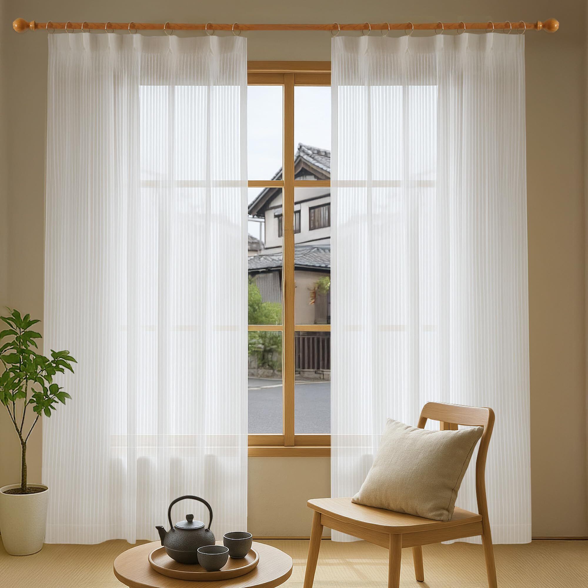 【新着商品】Deconovo レースカーテン 縞模様 外から見えにくい 柔い 断熱 北欧 透けない UVカット カーテン 1枚組 幅180x丈230cm ホワイト