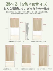 【1級遮光・目隠し】無地のカラーバリエーションに加え、高機能な1級遮光カーテン生地を使用した遮光のれん。一般的なのれんよりしっかりと外光を遮断し、透け感が少なく、優れた目隠し効果を発揮します。目線の気になる場所に仕切りとして、収納などちょっと隠すのに最適で、プライバシーを守ります。※一級遮光は光を完全に遮るものではありません。光漏れを気にされる方は遮光効果の高い濃色がおすすめです。