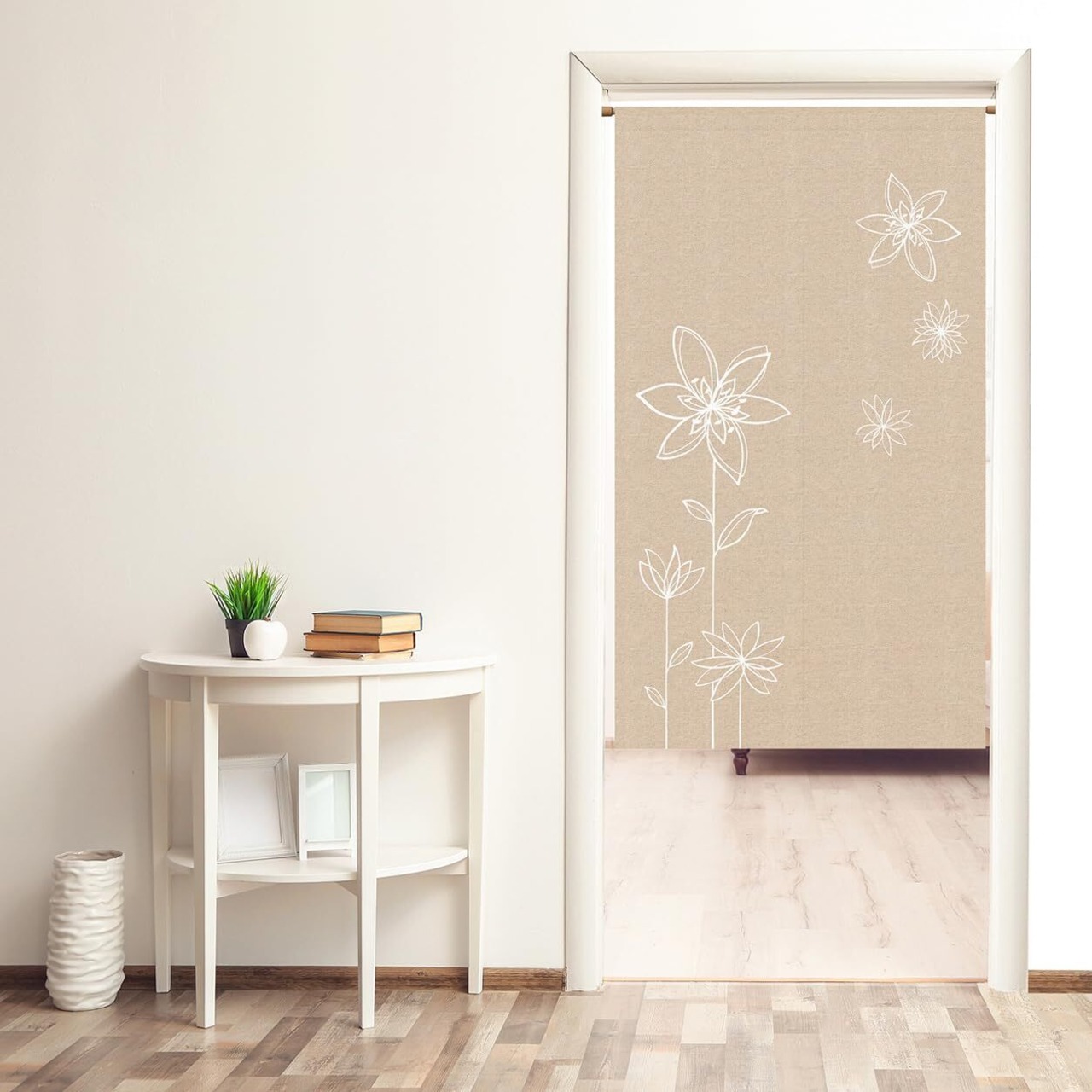 【人気商品】のれん 暖簾 間仕切りカーテン おしゃれ 目隠し 見えにくい 玄関 温泉 旅館 ホテル 廊下 お風呂 洗面所 トイレ オーダー可 ドアカーテン キッチ リビング 飲食店 出入り口 花(ベージュ)幅85丈150cm | SmartLiving+