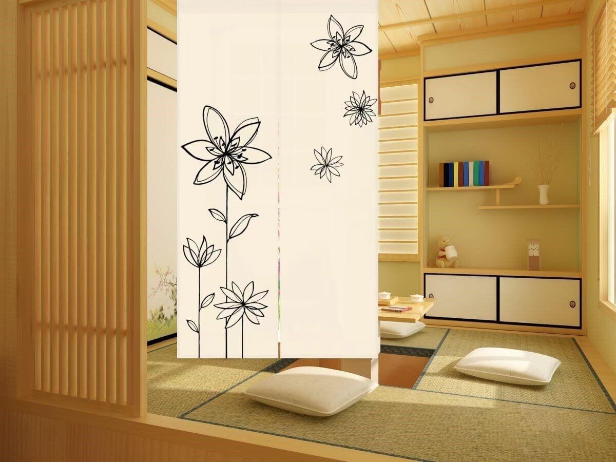 【在庫処分】のれん 暖簾 間仕切りカーテン目隠し見えにくい おしゃれ 玄関 温泉 旅館 ホテル 廊下 お風呂 洗面所 トイレ ドアカーテン キッチン リビング 飲食店 出入り口 幅75丈150cm (ホワイト花, 幅85x丈170cm) | SmartLiving+