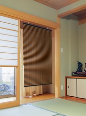 ビニールすだれ:小判型のパイプ(薄茶)と丸パイプ(こげ茶)とを組み合わせたボーダー柄ので、和洋室にマッチします