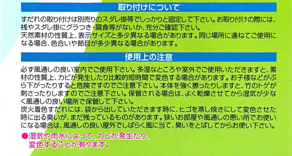すだれの取り付け時には、しっかりと固定されているか確認し、使用中に外れないようご注意ください。
