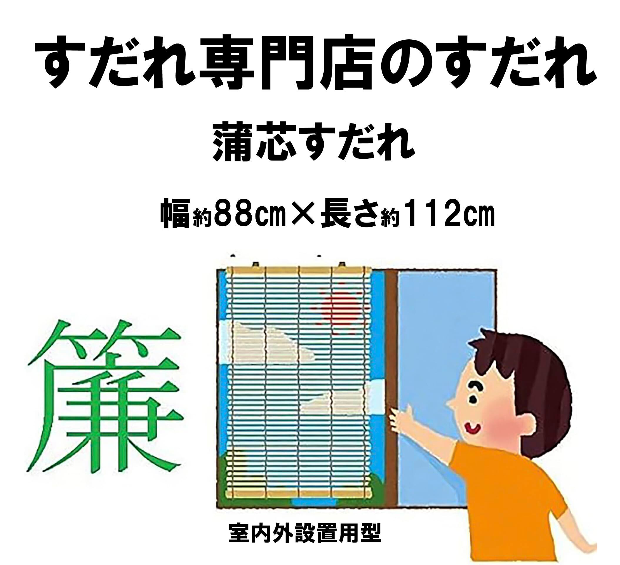 蒲芯 すだれ 約88×112㎝ 中 芯太 丈夫 遮蔽率にすぐれた 簾 虫が付きにくい 高温熱処理(約165度) シュリンク包装 水勘製簾所