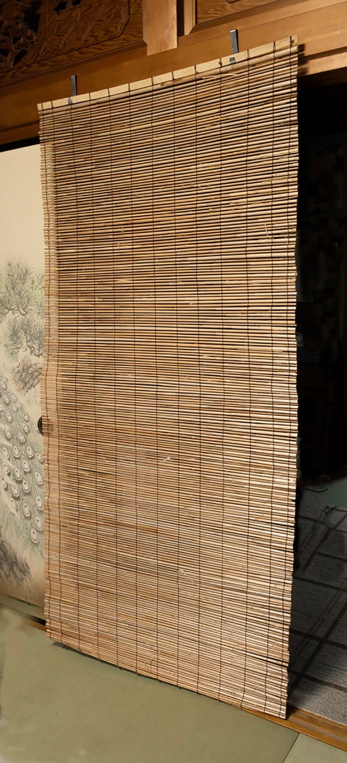 比較的素材が太く、柔らかい発砲上の芯を持ち、日よけや目隠し効果に加え、断熱効果も(一般のすだれや竹製品に比べると)高い商品です。特に西日のよく当たるお部屋には最適です。