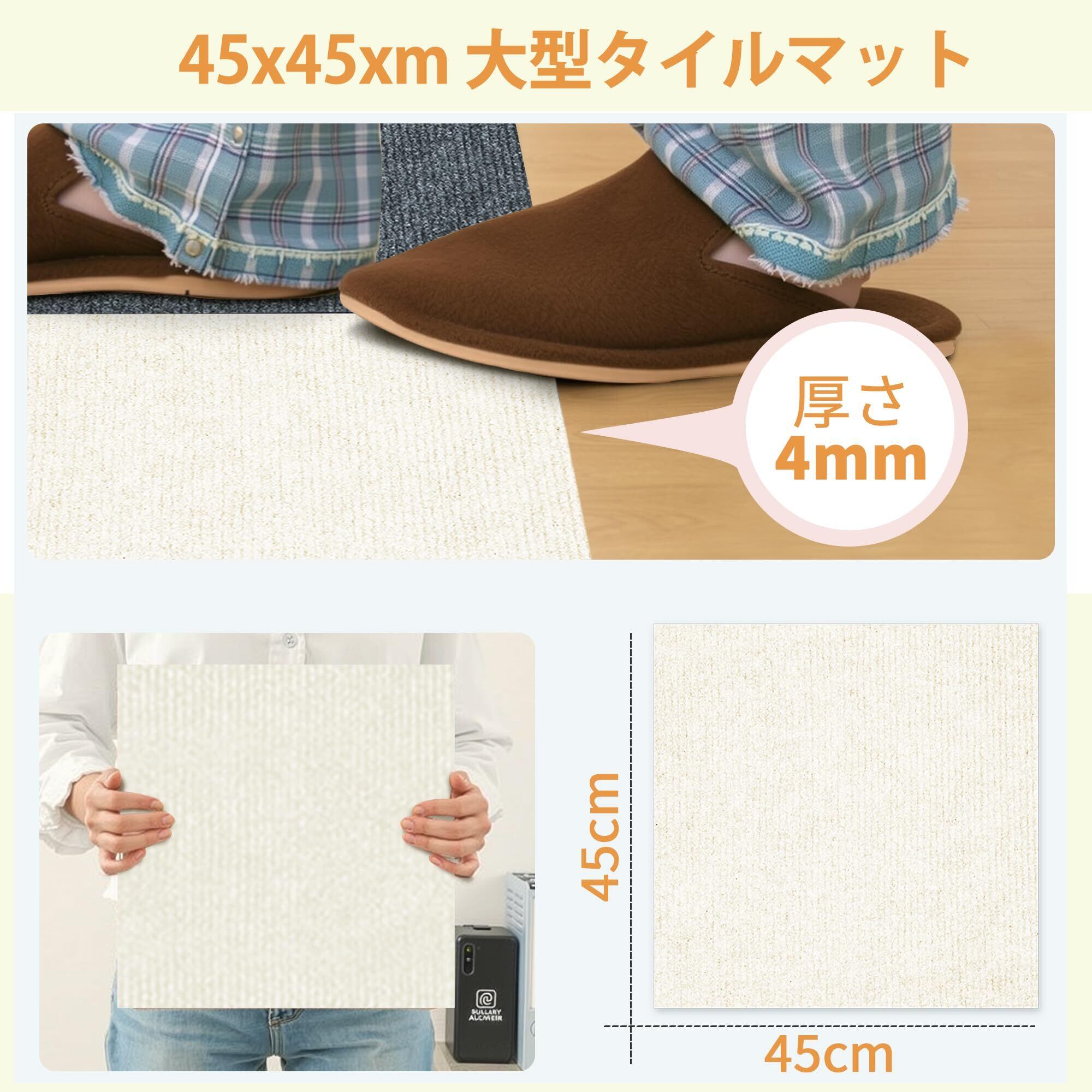 ■【安全性と快適性を兼ね備えたタイルマット!】4mmの薄さは、足元に適度なクッション性を提供し、硬い床からの衝撃を和らげます。床暖房対応なので、季節を問わず快適に過ごせます。高齢者やペットにも優しい設計で、毎日の生活を支えます。