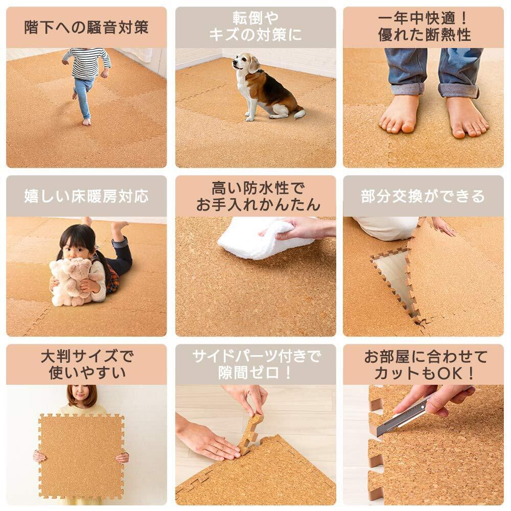 ■【ナチュラルなコルク素材でおしゃれな空間作り!】アイリスプラザのジョイントマットは、45cm×45cmのサイズのマットを4枚セットにした魅力的な商品です。自然なコルク素材が優れたデザイン性を持ち、どんなインテリアにもマッチするリラックス空間を演出します。