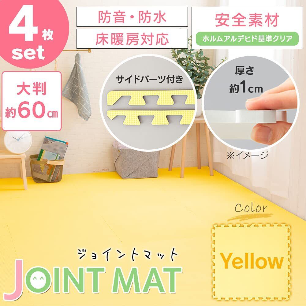 ■【明るいイエローが魅力の大判マット!】アイリスプラザのジョイントマットは、60cm×60cmの大サイズを4枚セットでお届けします。鮮やかなイエローが、リビングや子供部屋を明るく演出し、魅力的な空間を創り出します。