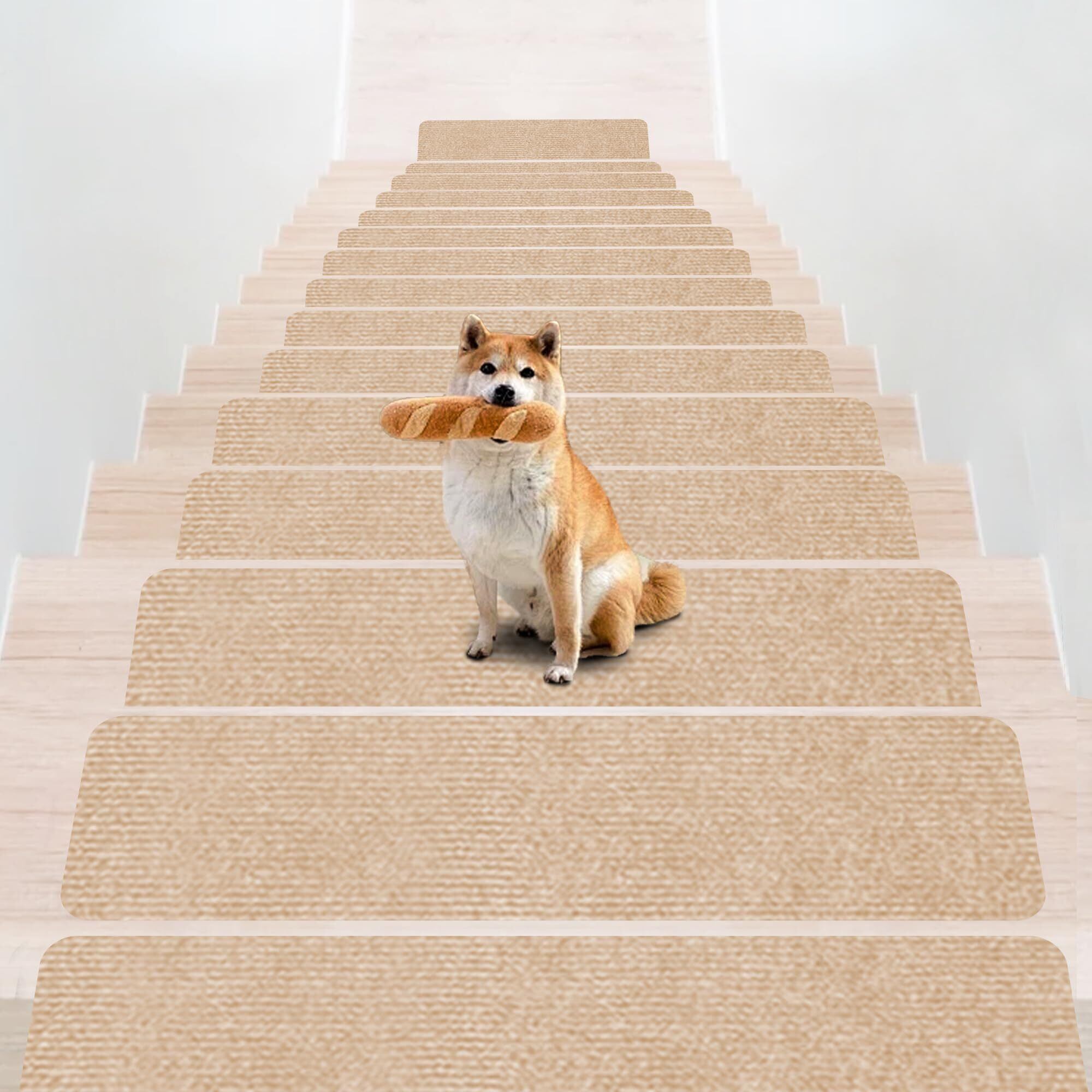 【数量限定】【 限定ブランド】階段用滑り止めマット70X22cm 【7枚入り】XIWEIYI ステップマット 4mm厚 stageカーペット stageクッション 転倒防止 キズ防止足腰負担軽減 ペット対策 猫犬用 stage滑り止めマット(ベージュ) | SmartLiving+