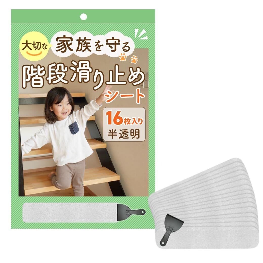 【在庫処分】階段 滑り止めシート 透明 16枚入【家族を守る滑り止め。誰でも簡単!きれいに貼れる】 滑り止めテープ 滑り止め 転倒防止 事故防止 目立たない 防水 おしゃれ シンプル 動画付きマニュアル カットOK 屋内 介護 高齢者 子供 ペット 転倒 ズレない (61cm×10cm)