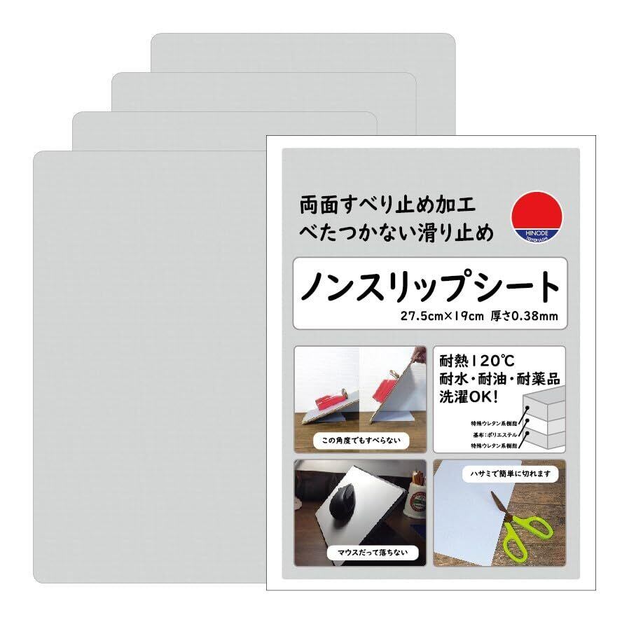 HINODE すべり止めシート ノンスリップシート グレー (19cmx27.5cm/4枚) A4サイズ 安心の日本製 ハサミで簡単カット 強力 ソファー すべり止め 滑り止め マット すべり防止 ズレ防止 食器棚 ふとん マットレス 日之出【日本製】