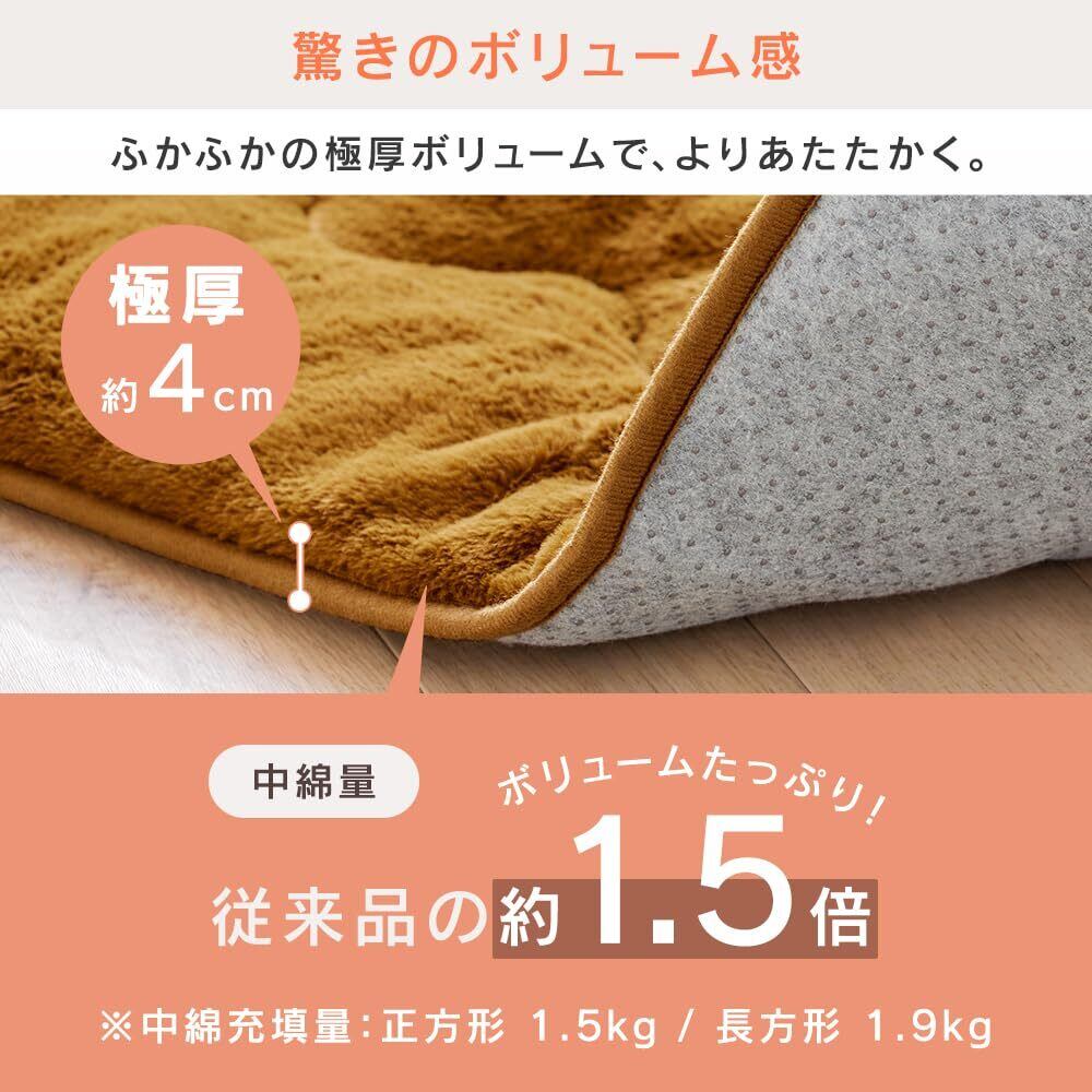 アイリスオーヤマ こたつ敷き布団 長方形 蓄熱綿でずっと暖かい きめ細かくふんわり柔らかなさわり心地 ラビットファー調 極厚こたつ敷き布団 包み込まれるような肌ざわり 家庭洗い可 マスタード KSB-R1924