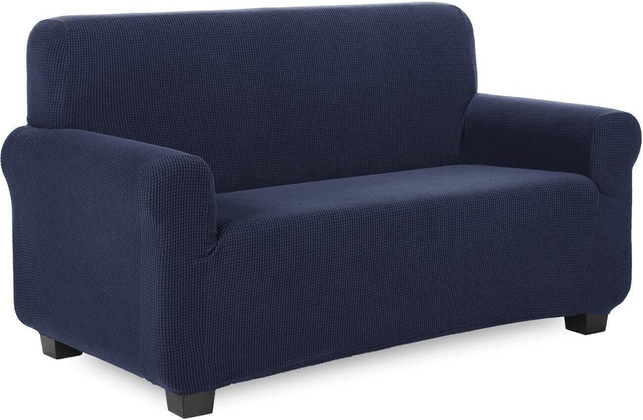 TIANSHU ソファーカバー 2人掛け 肘付き マルチカバー 北欧 無地 おしゃれ ストレッチ フィットタイプ 通気性 耐久性 滑り止め 柔らかい 伸縮素材 伸び良く 犬猫対策 防塵 防汚 四季適用 インテリア 新生活 超便利 (ダークブルー)