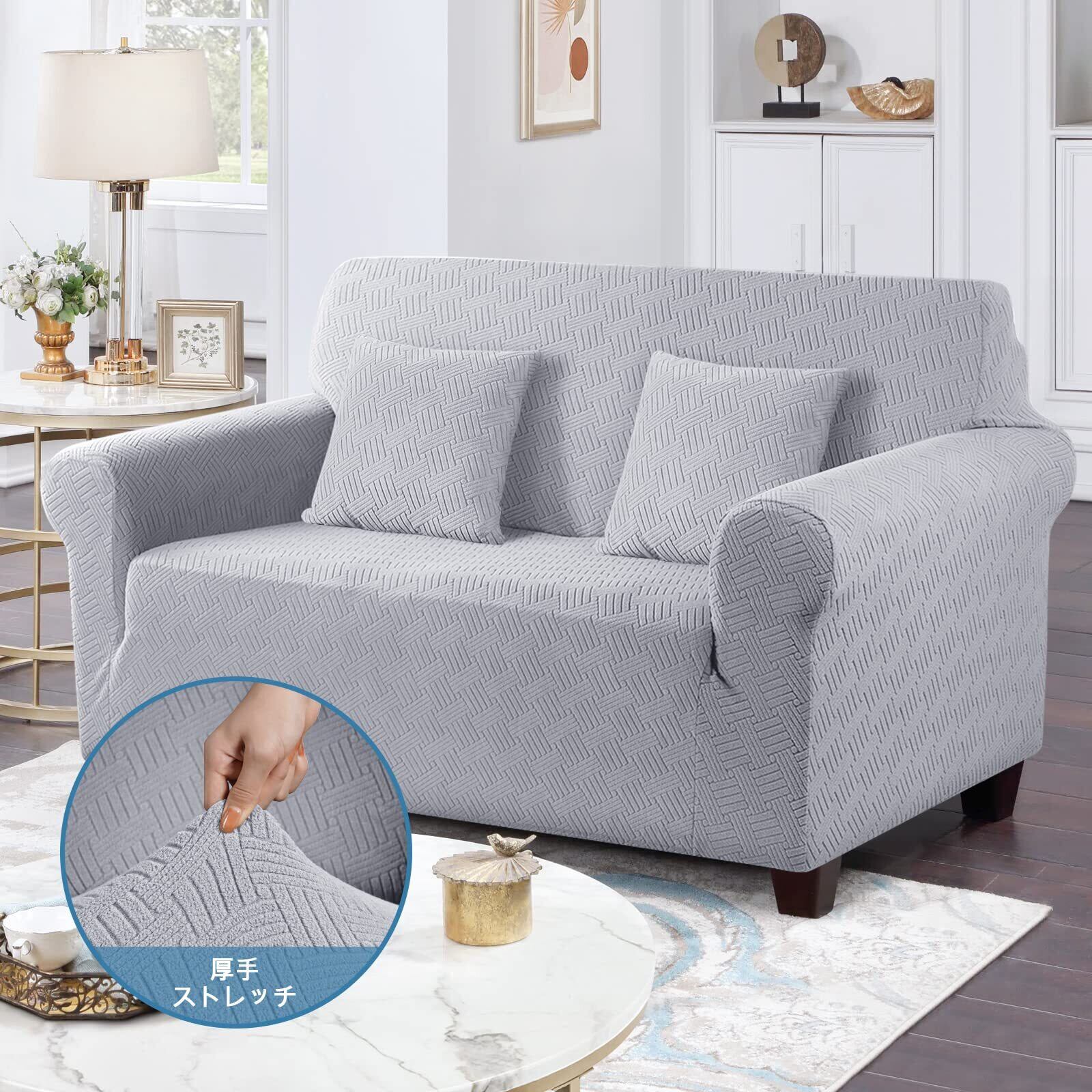 【数量限定】TAOCOCO ソファーカバー 1人2人3人掛け 肘付き 無地 縦横弾力 ストレッチ フィットタイプ 辣條纹 滑り止め 柔らかい 伸縮素材 ソファー保護 キズ防止 爪とぎ防止 防塵 汚れ防止 犬猫対策 清潔簡単 装着便利 丸洗い可能 四季適用 (2人掛け, 新しいライトグレー) | SmartLiving+