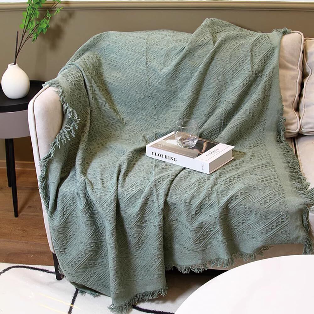 Kaoslen マルチカバー ソファカバー 北欧風 ソファーかばー 多機能 ブランケット ベッドカバー フリンジ付き ソファ、ベッドカバー、毛布、テーブルクロスなどに適しています 汚れ防止 滑り止め 傷防止 防塵 四季通用 草の緑 180*230cm(2人掛け)
