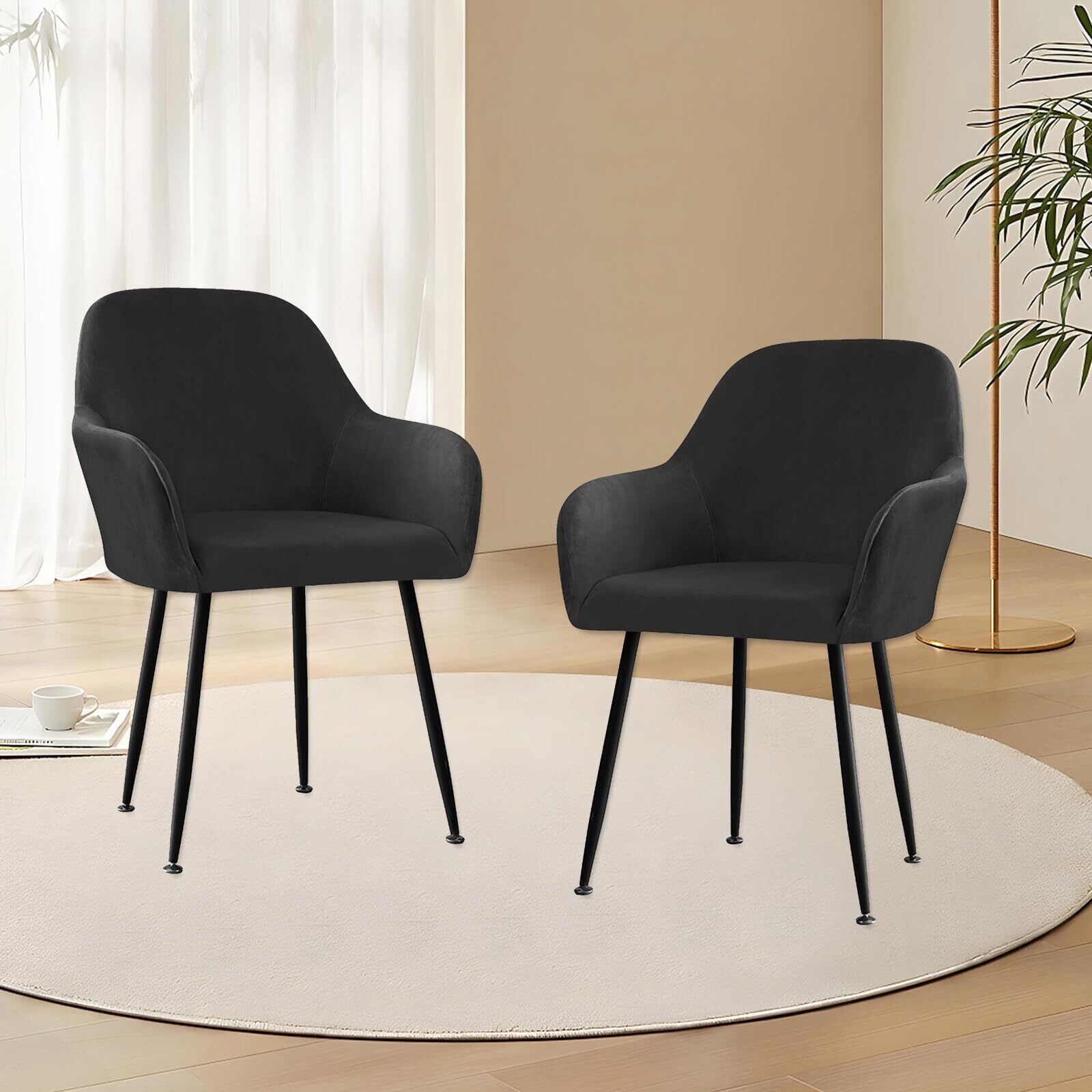 【在庫処分】ダイニングチェアカバー 肘付き 椅子カバー 2枚セット カーブバックダイニングチェアカバー 伸縮 洗える ストレッチ チェアカバー ふわふわ 汚れ防止 滑り止め 宴会 リビングルーム ダイニングルーム バー オフィス用 (黒)