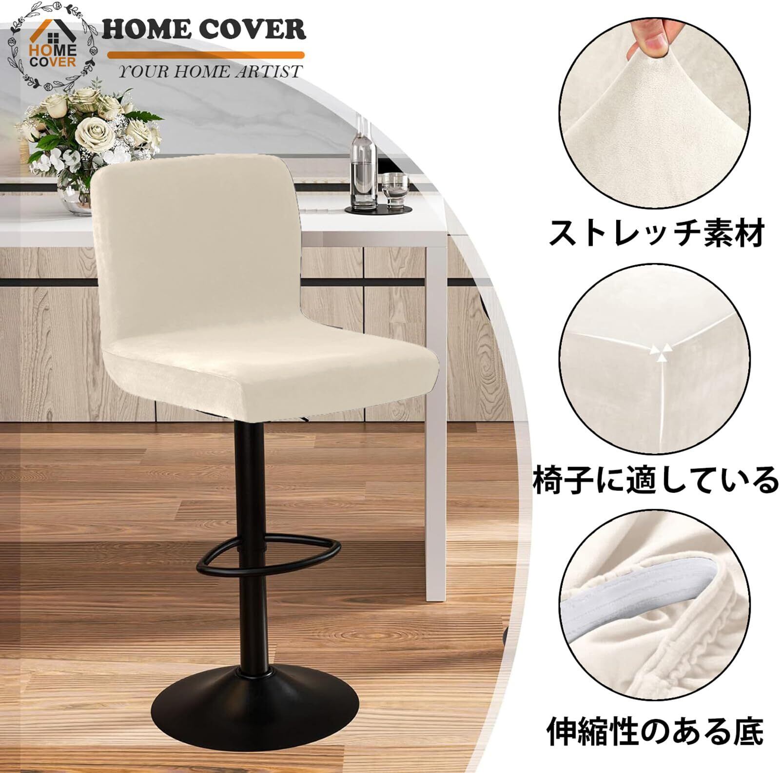 HOMECOVER カウンターチェアカバー 背もたれ付き, ストレッチ フランネル ファブリック バースツールカバー 取り外し可能 ローバックレスト 回転 椅子カバー-クリーム-4枚