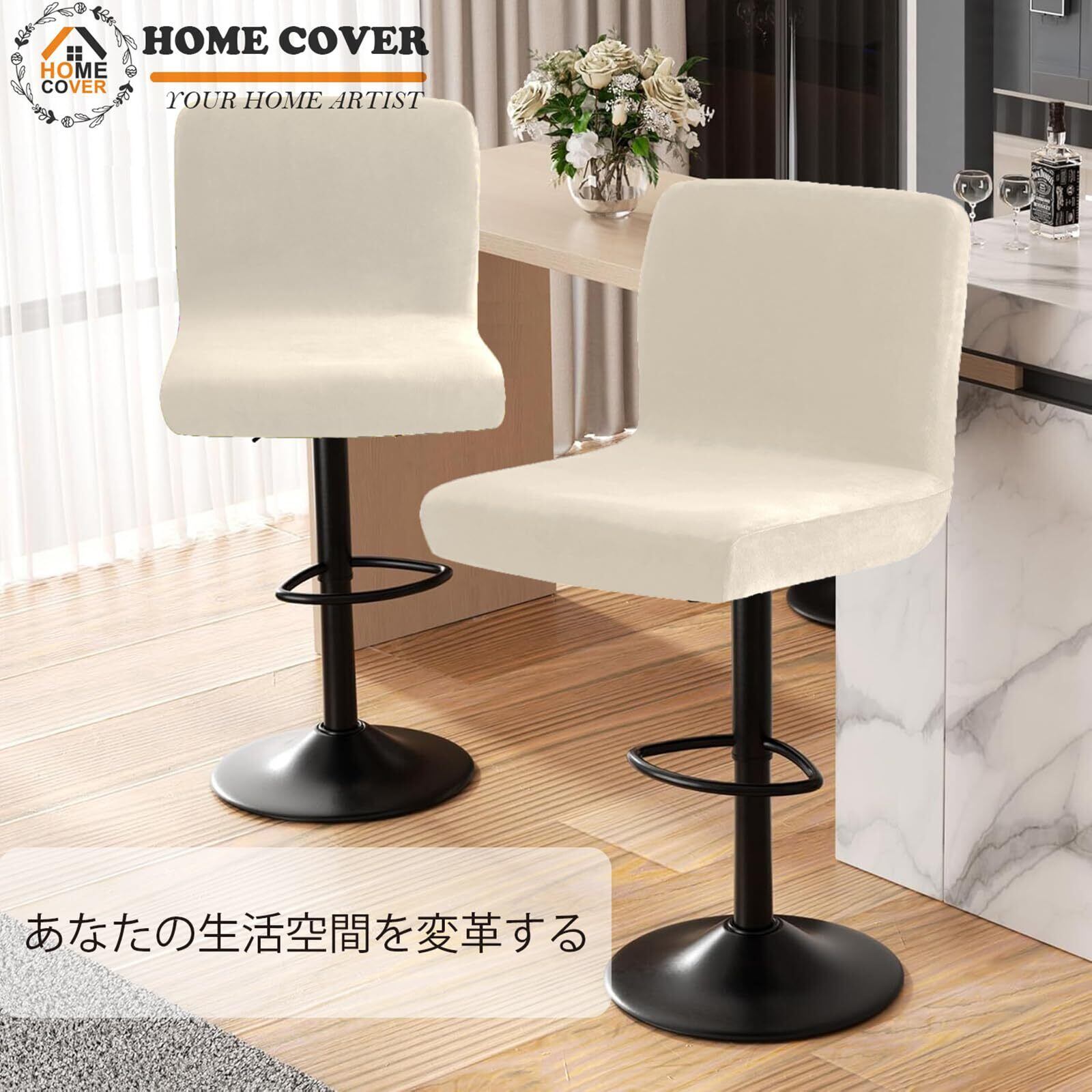 【在庫セール】HOMECOVER カウンターチェアカバー 背もたれ付き, ストレッチ フランネル ファブリック バースツールカバー 取り外し可能 ローバックレスト 回転 椅子カバー-クリーム-4枚 | SmartLiving+