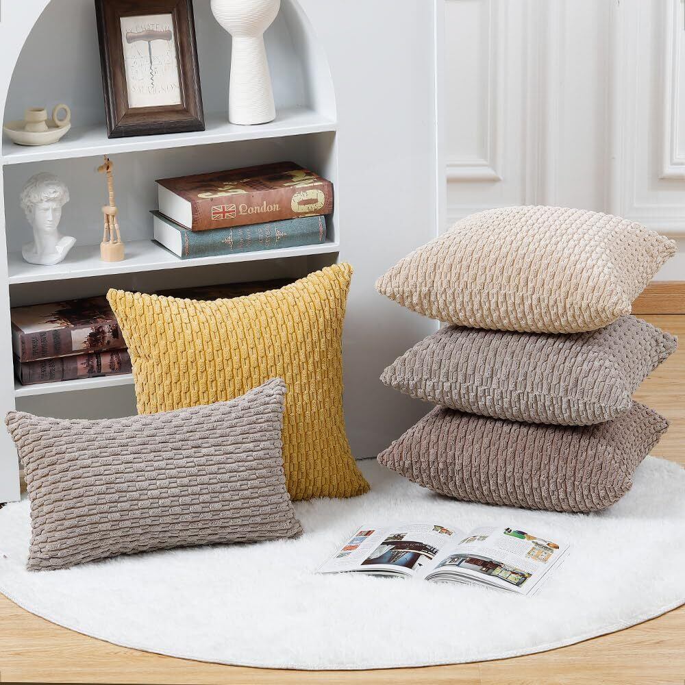 【特価セール】Madizz クッションカバー 2枚セット 柔らかい コーデュロイ 装飾的な 枕カバー 贅沢 スタイル クッションケース 寝室用 ソファ用 45 x 45 cm トープ | SmartLiving+