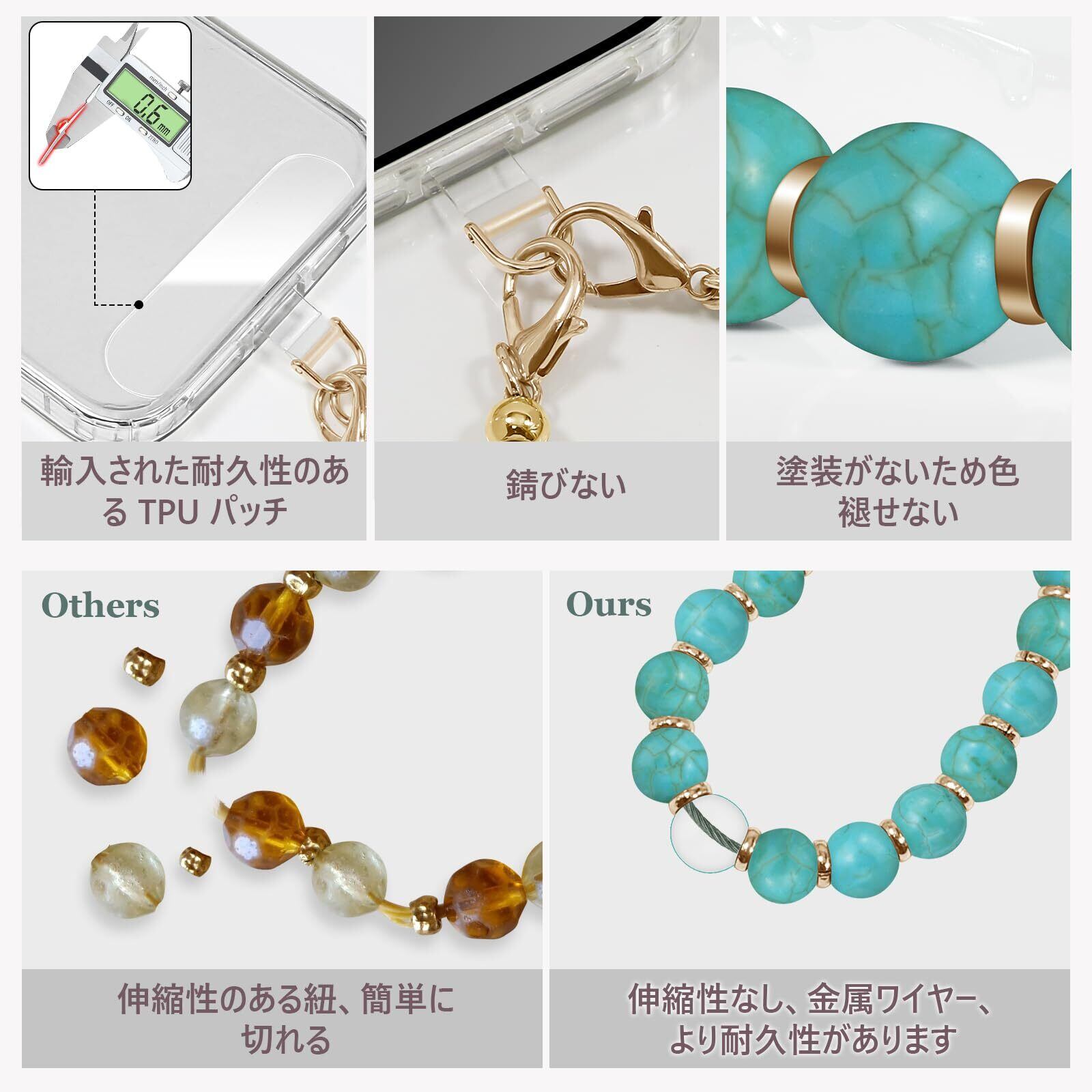 【スタイルと機能を兼ね備えたピ一ズ付きスマ木ストラップ] 丁寧に作られたピ一ズ付きスマ木チャ一ムは、おしやれさと使いやすさを両立したアイテムです。高品質なピ一ズを丈夫なスチ一ルワイャ一でつないでいるため、簡単には壊れません。ビ一ズを使用しているため、一般的なストラップよりやや重め(約40g)となっております。リストレッ卜タイプでスマ木を手首に掛けられ、両手が自由になるため、ちょっとした外出にも便利です。