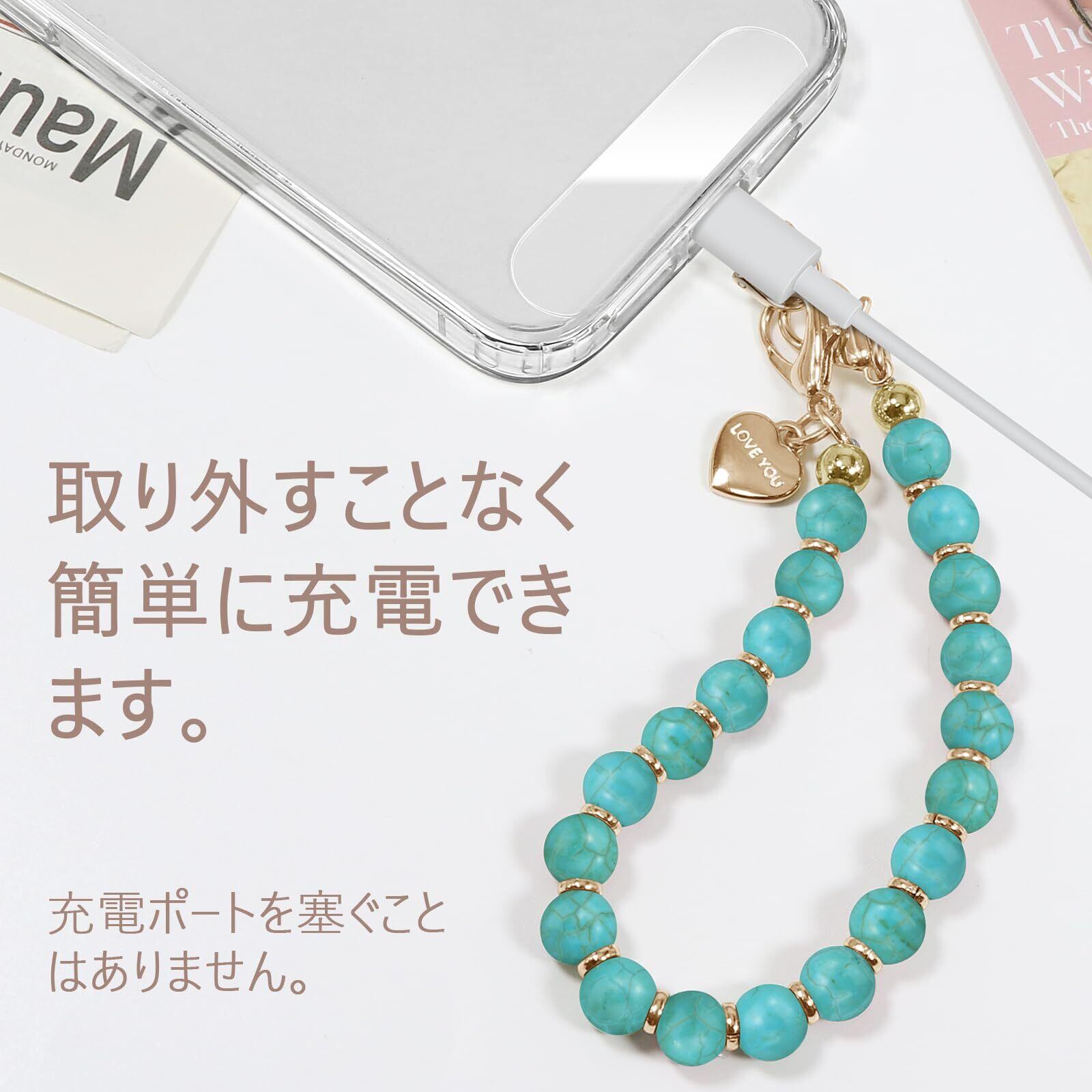 [X-Lounge] スマホストラップ キラキラハンドストラップ オシャレなパールストラップ ファッション スマホアクセサリー 女性用 アウトドア用 パッチ1枚付き(ターコイズ)