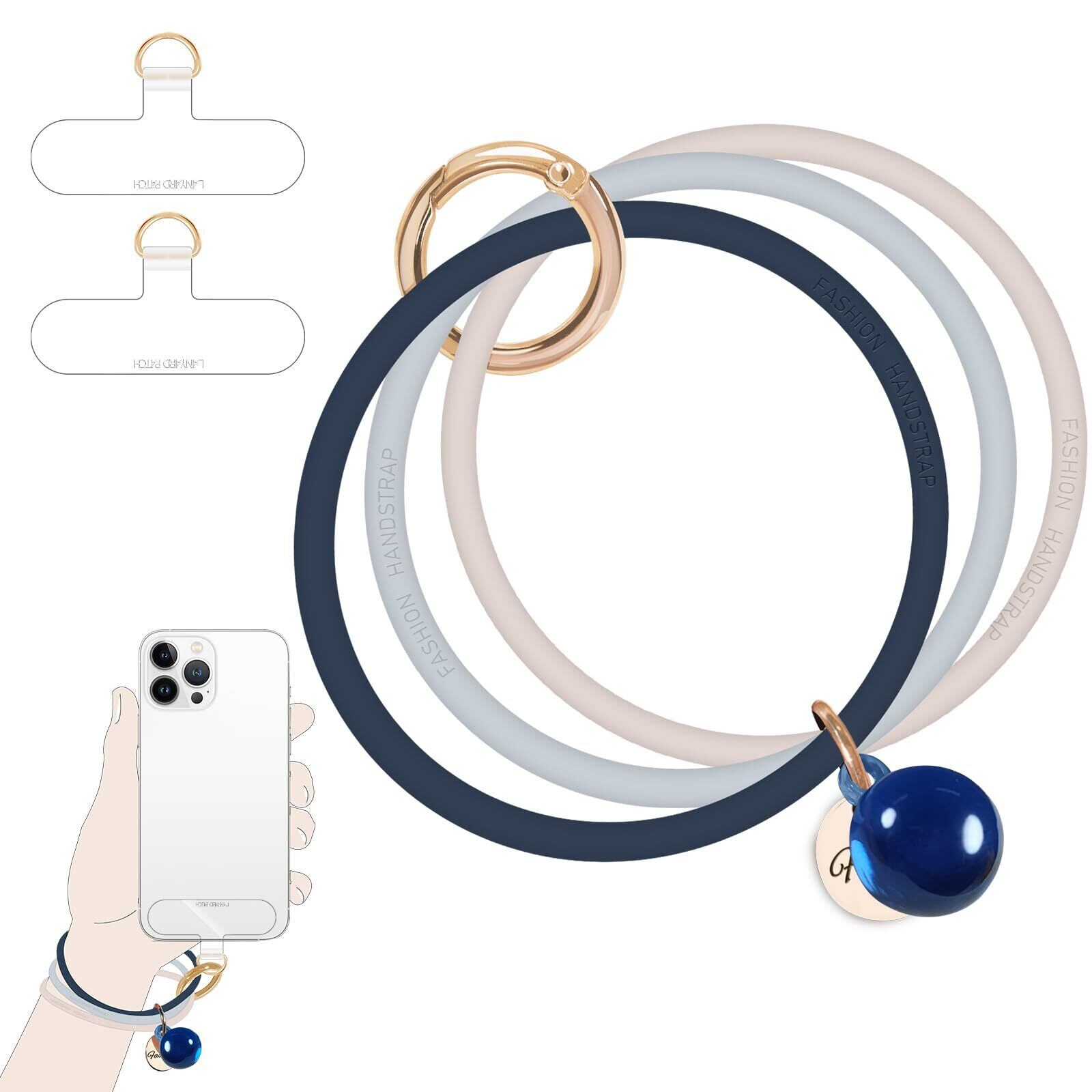 [UKON] スマホストラップ スマホシリコンリング おしゃれな携帯ストラップ シンプル 落下防止 着脱簡単 全機種対応 三色組み合わせ パッチ2枚付き (米白色)