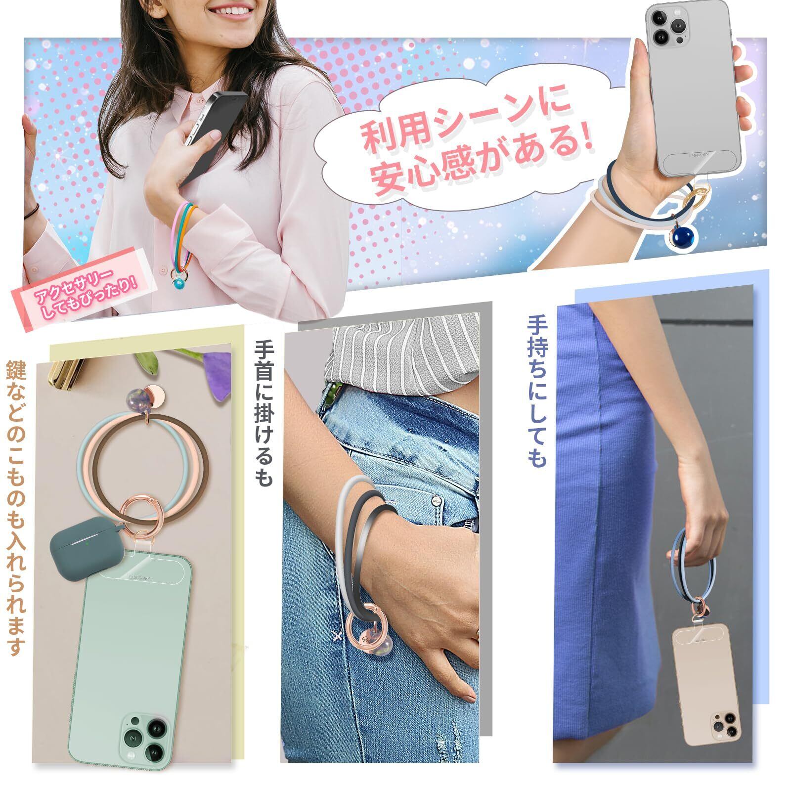 ■セット内容:スマホストラップ、シリコンリング、パッチ2枚