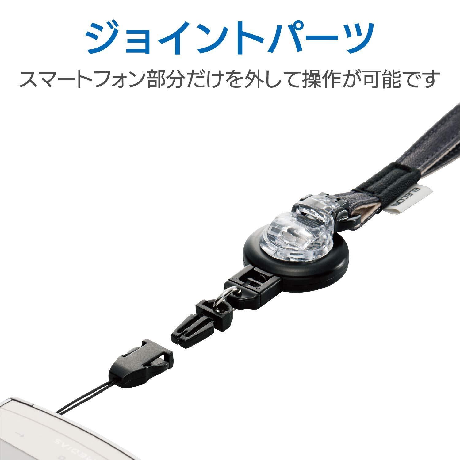 ELECOM スマートフォン用のびるストラップ コードリール付き 落下防止クリップ付き ブラック MPA-ST01BK